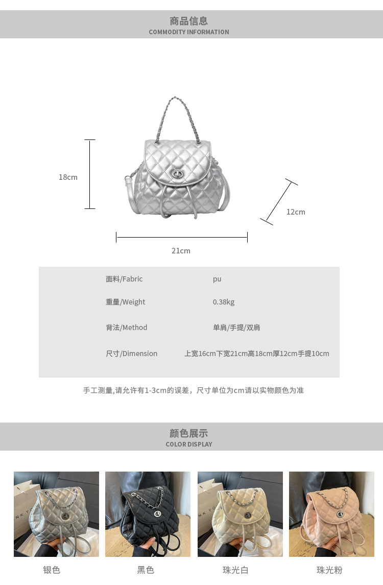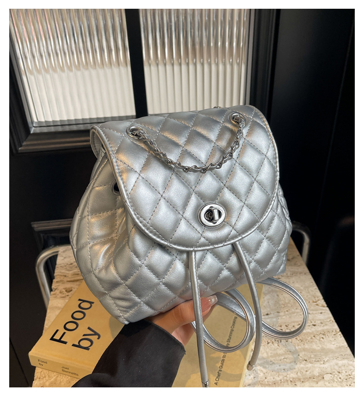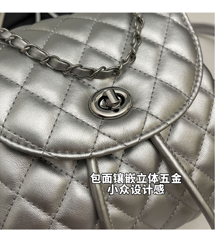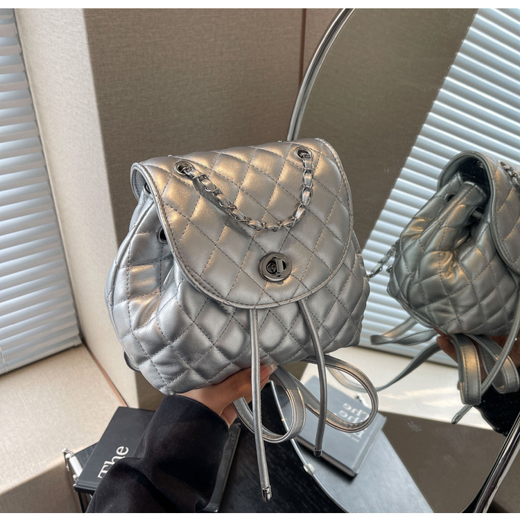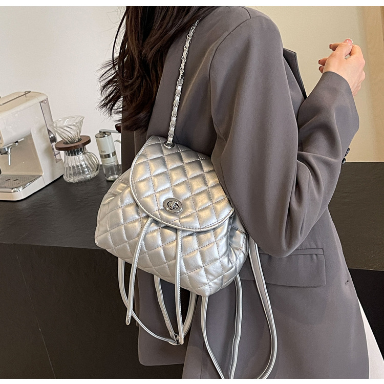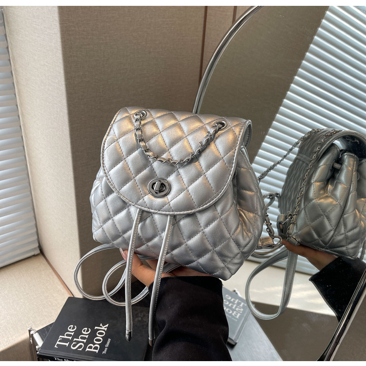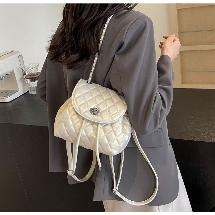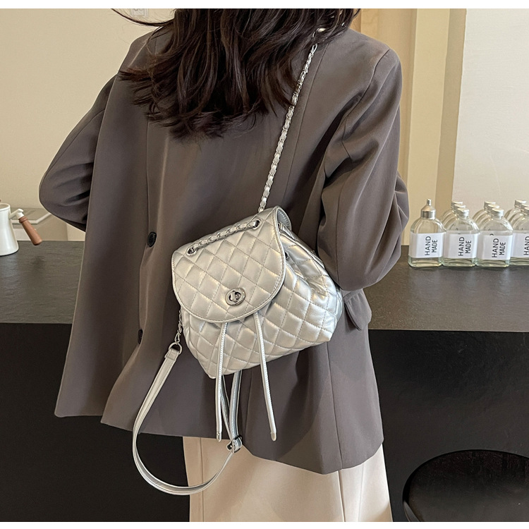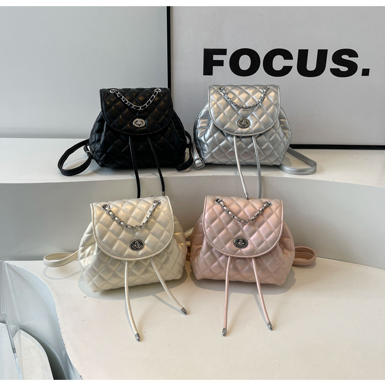 ins新款小香风韩版百搭菱格链条双肩包学生书包时尚潮流背包