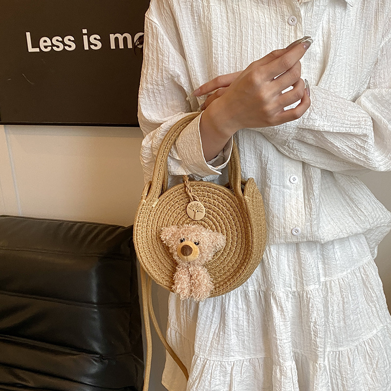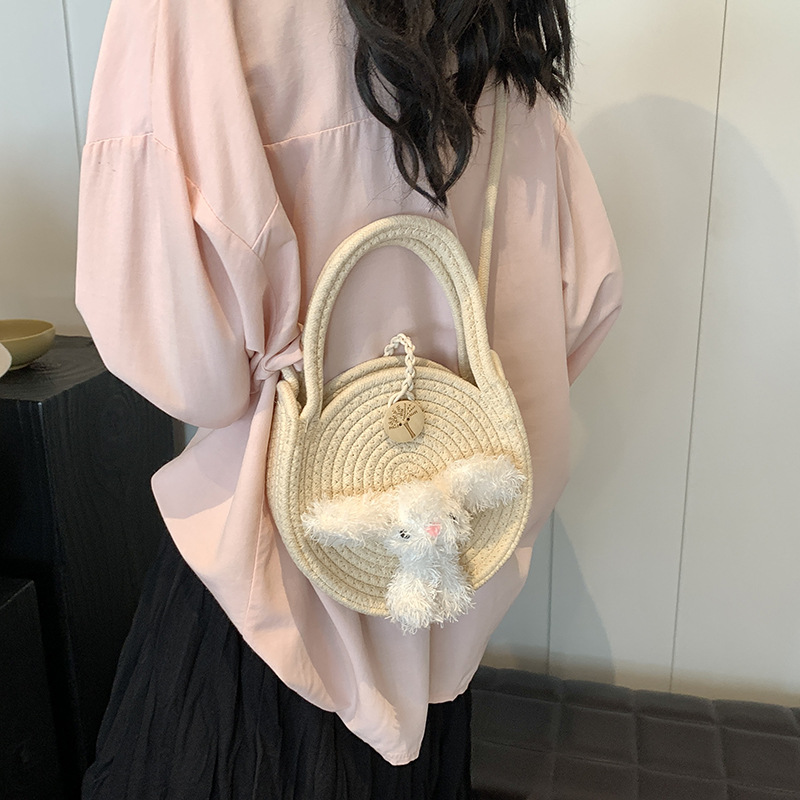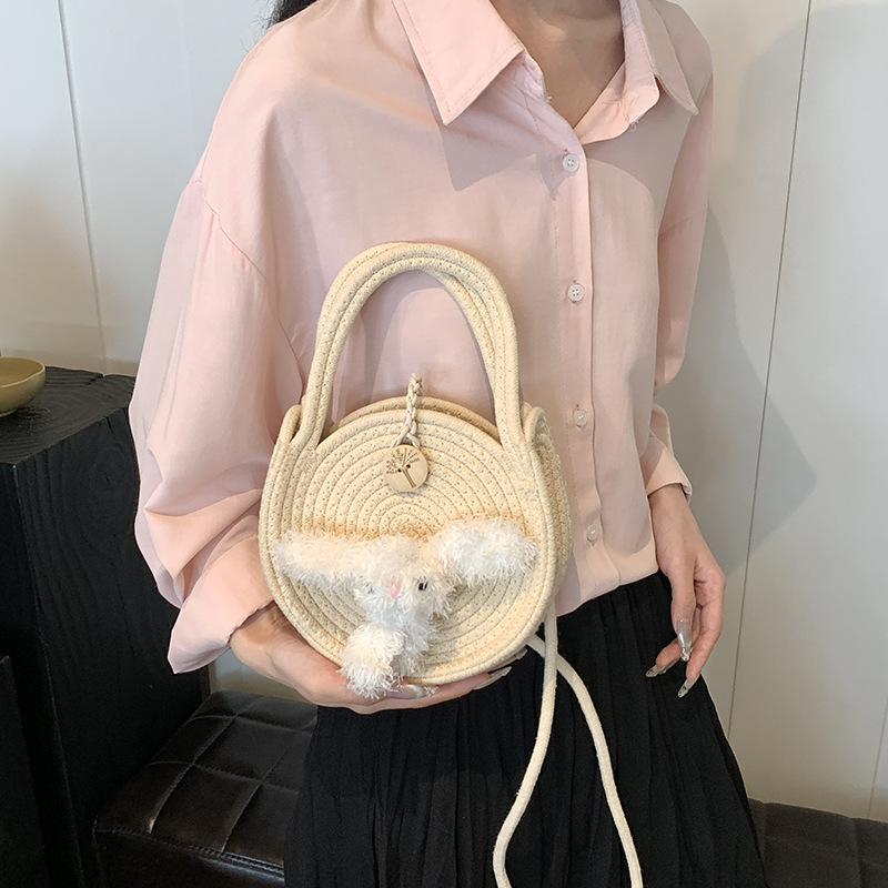 春夏上新编织包包女潮流时尚草编单肩斜挎包小众高级感小圆包