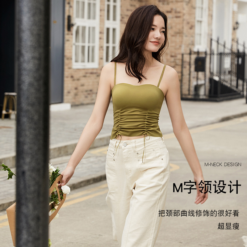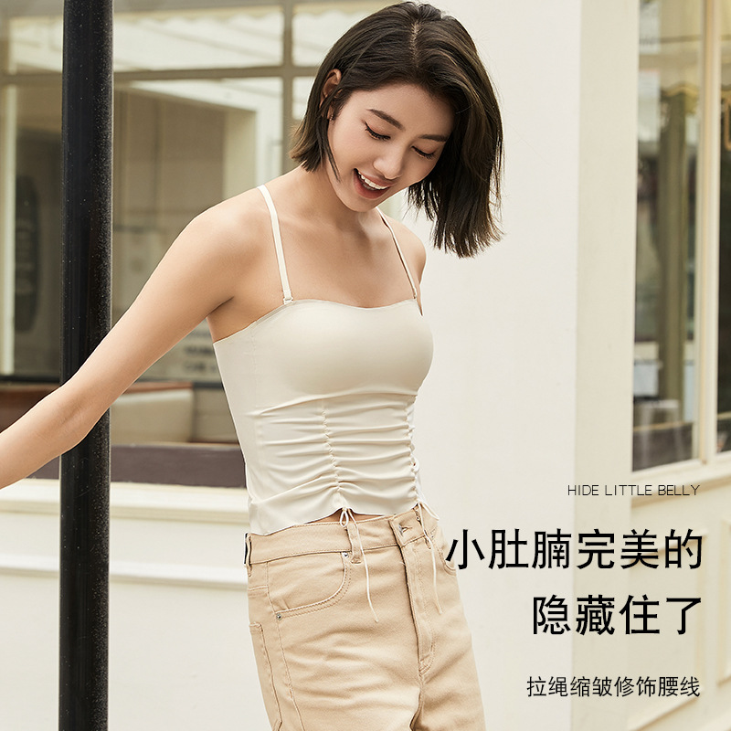 【辣妹风】微褶纯欲吊带内衣女带胸垫内穿外搭一体式背心式文胸女