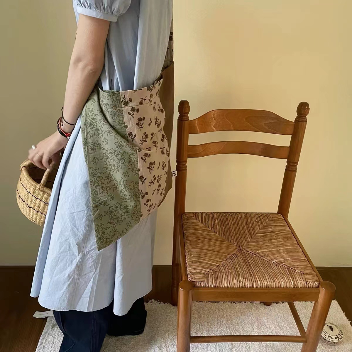 新品-粟壳与苔古 日系日杂感棕绿碎花拼接 斜挎 单肩布袋