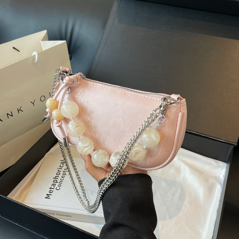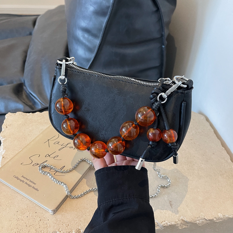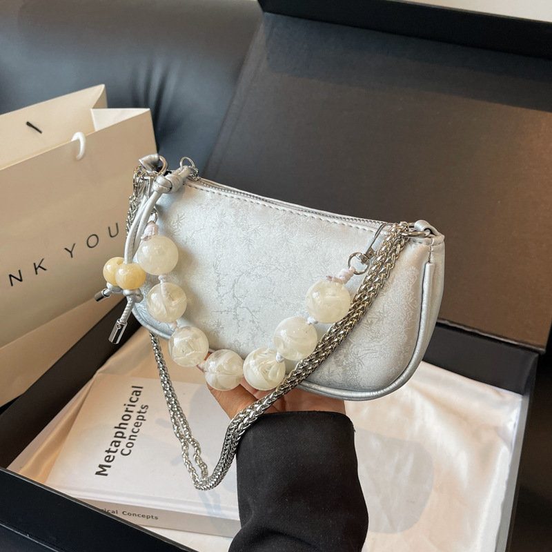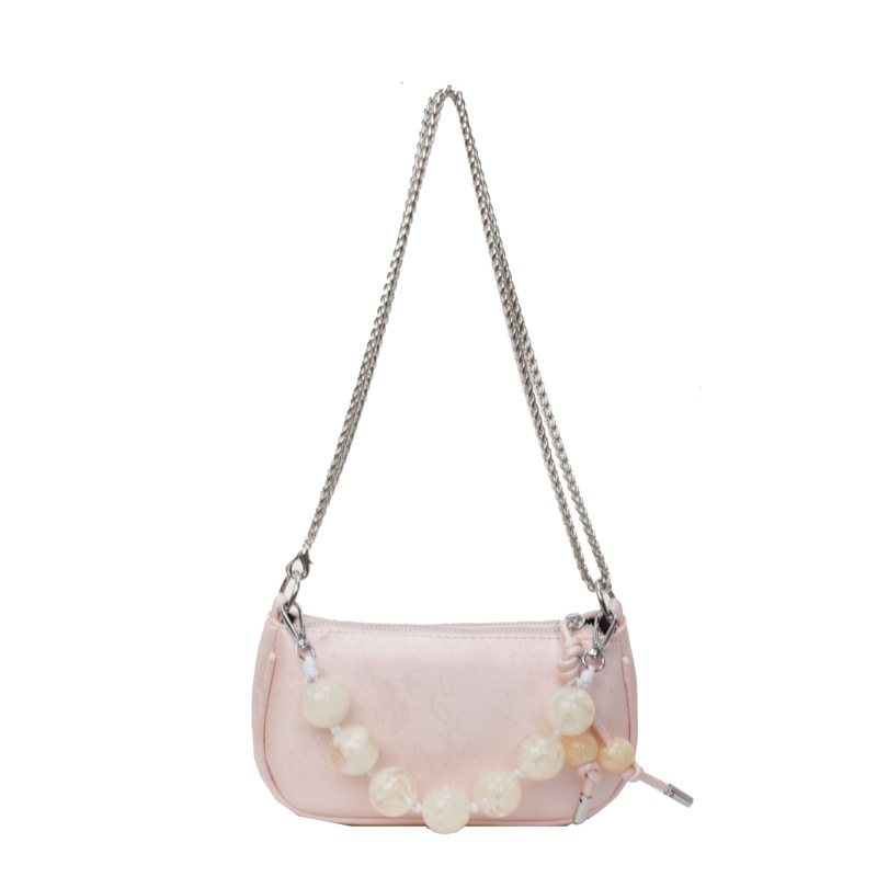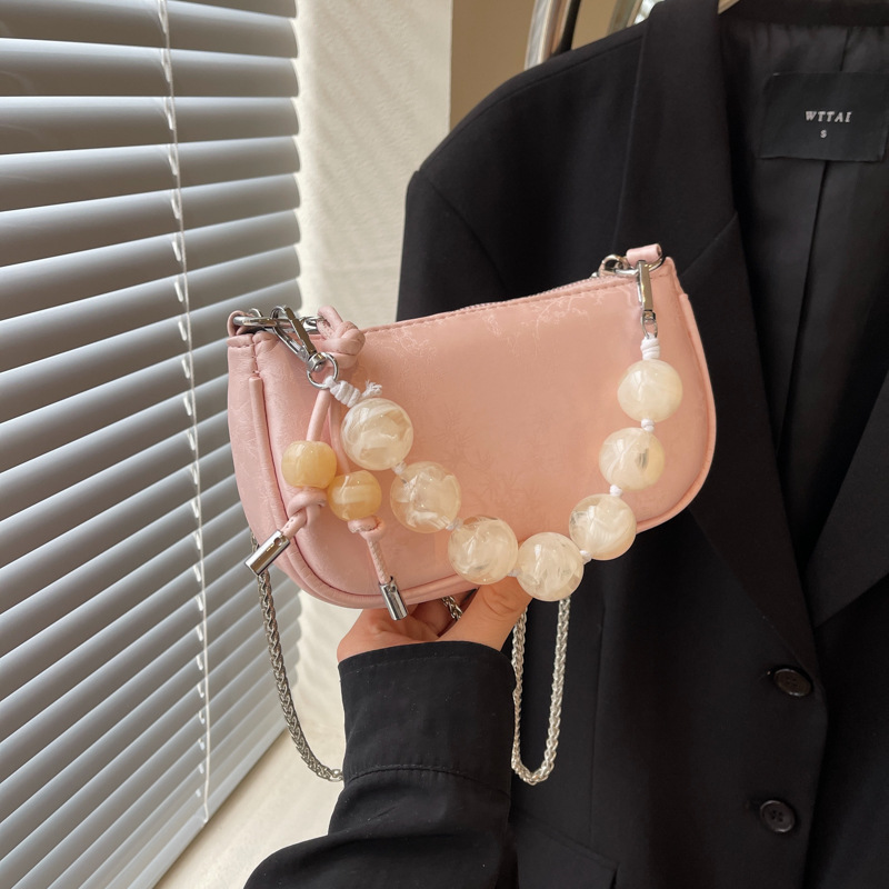 新中式串珠手提包包女新款夏季百搭链条单肩斜挎包迷你小方包