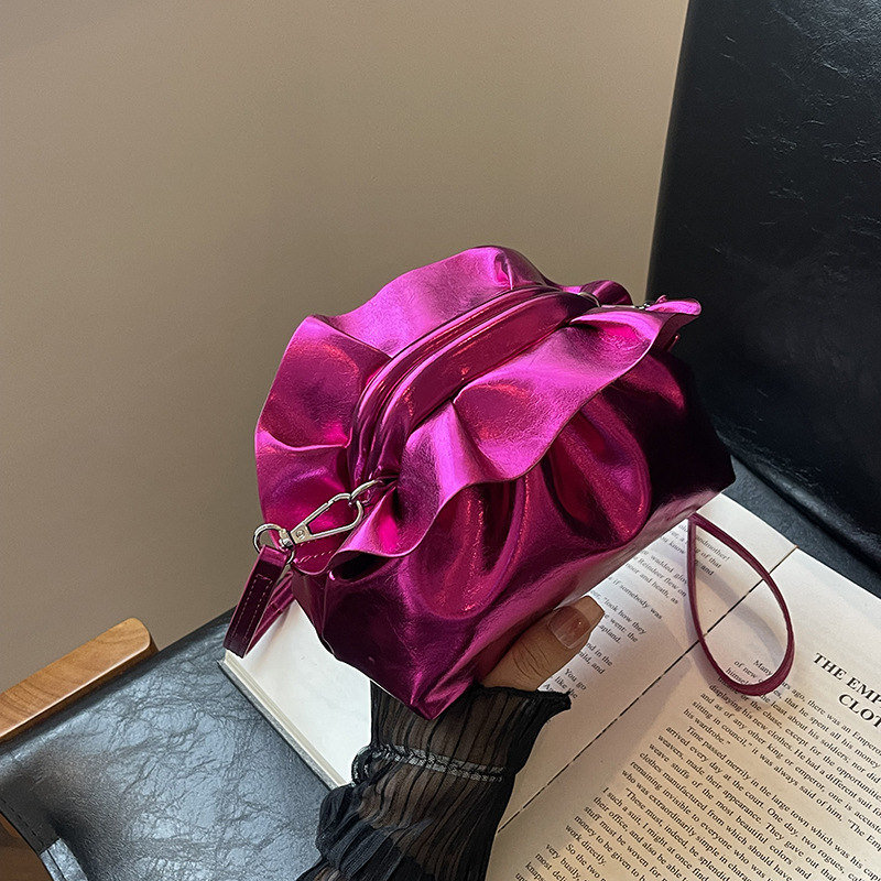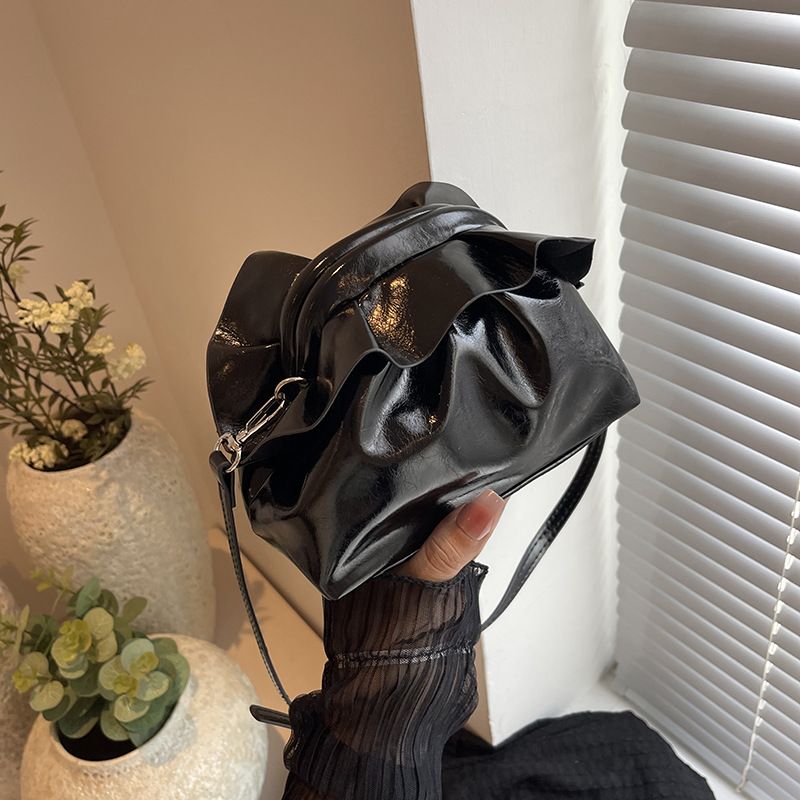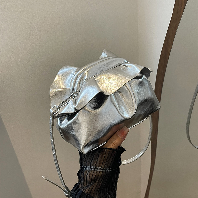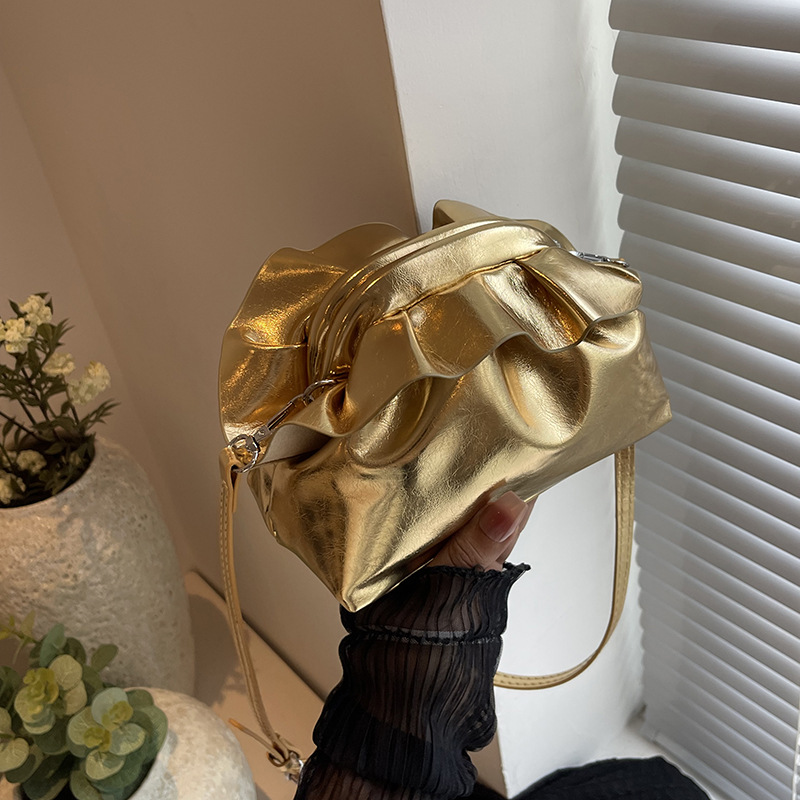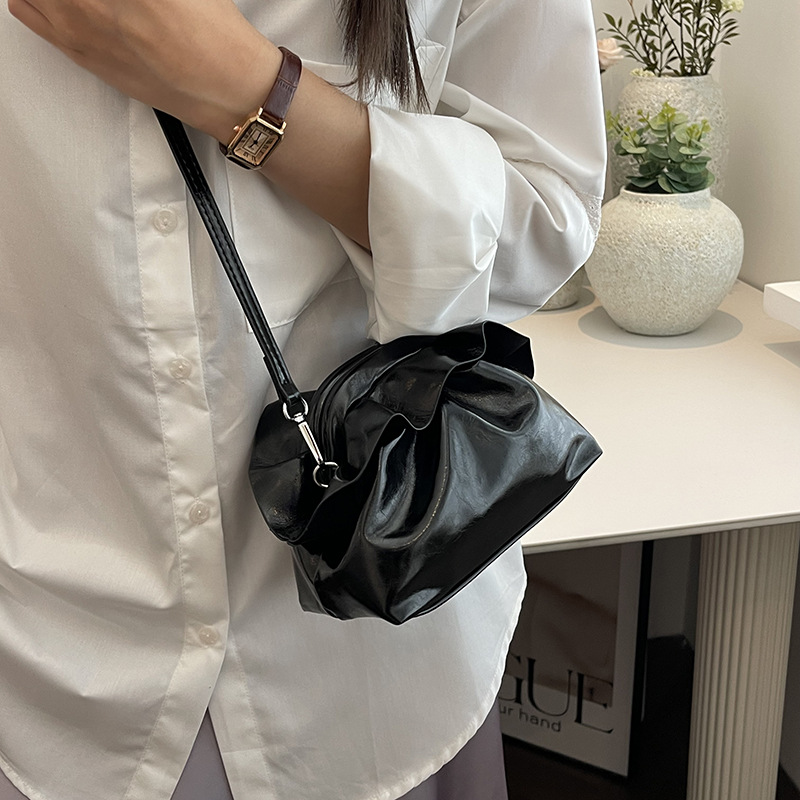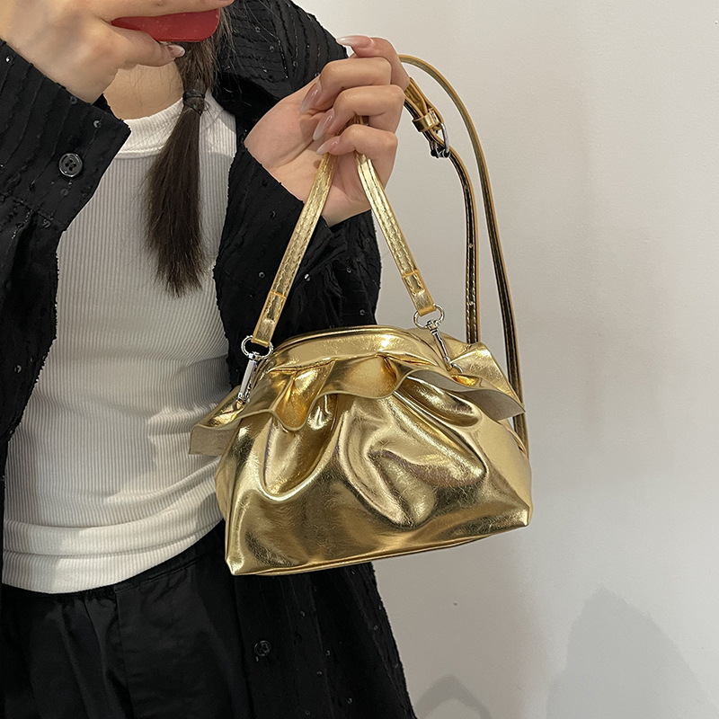 法国小众云朵褶皱夹口斜挎包包女新款流行洋气高级感精致小包