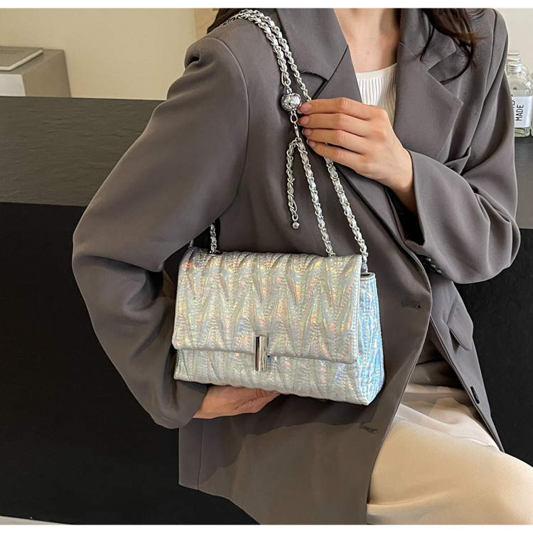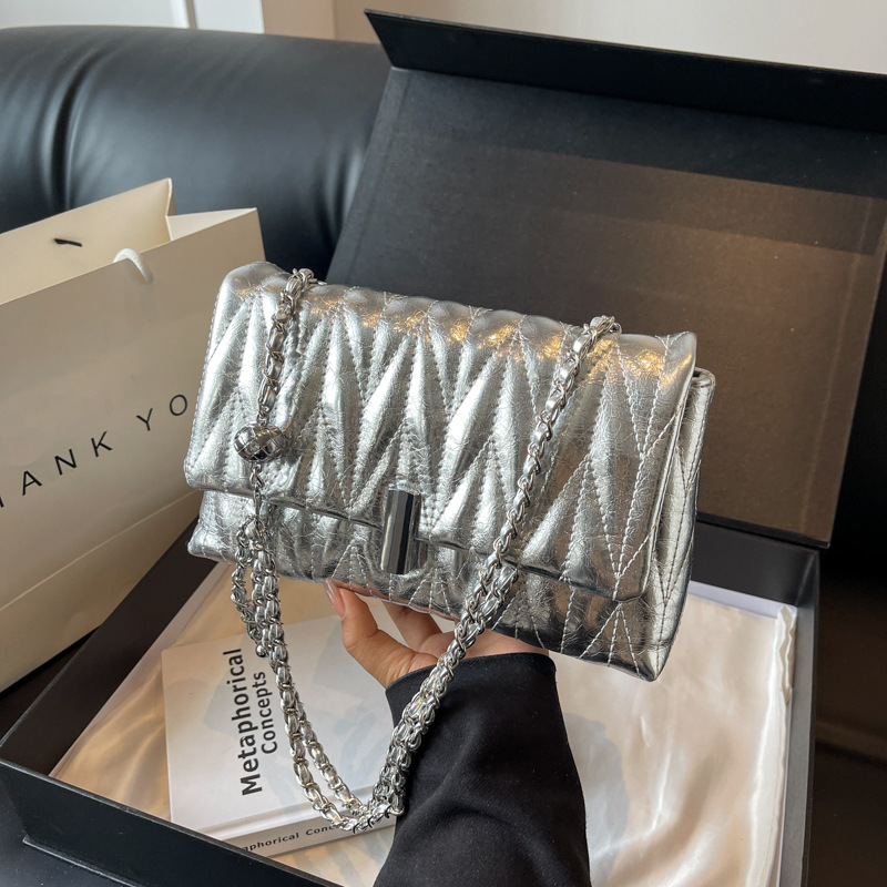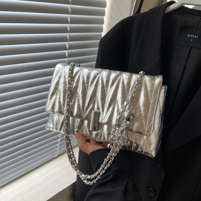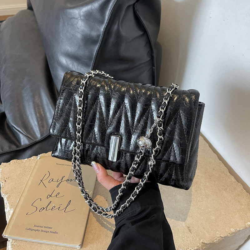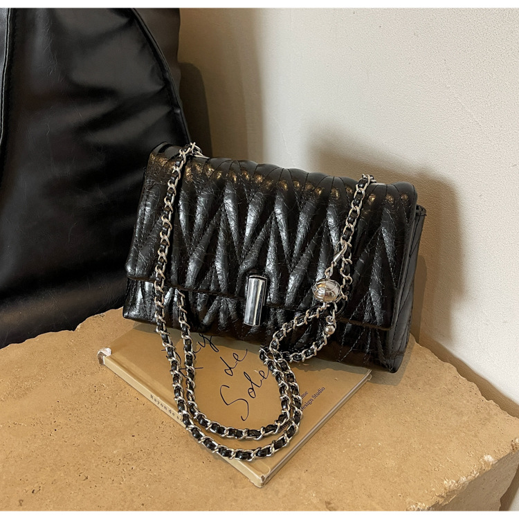 绣线褶皱小包包女夏季新款单肩腋下包复古洋气链条斜挎小方包