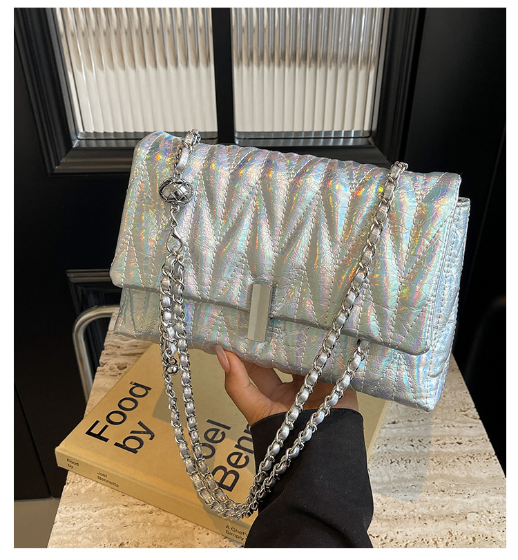 韩国小单肩众银色宝石双肩包女生新款百搭链条背包学生上课书包