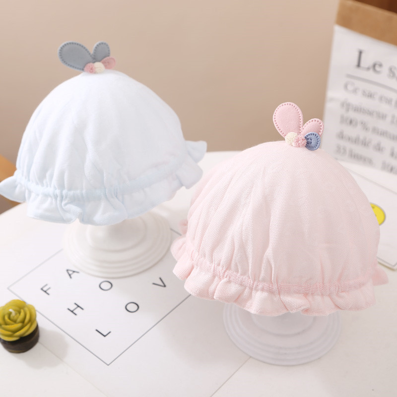 婴儿帽子春夏季薄款纱布胎帽女宝宝公主帽新生幼儿可爱超萌渔夫帽