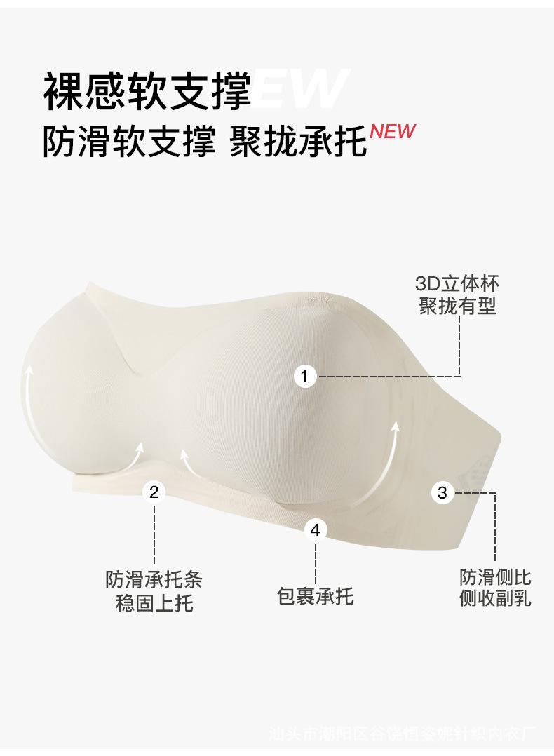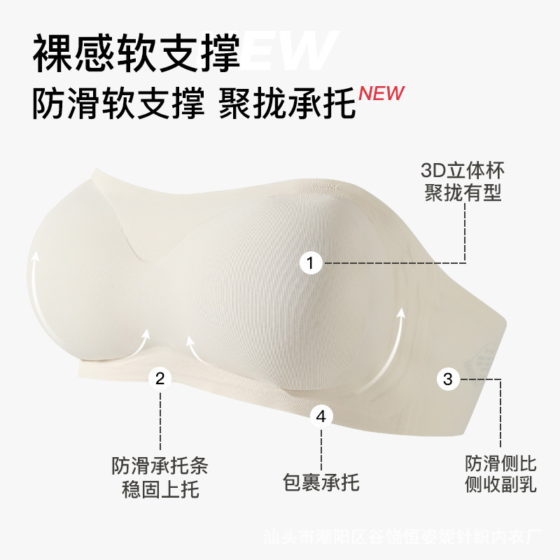 【胶原蛋白】夏无肩带内衣女不掉防滑半杯文胸婚纱照无痕隐形抹胸