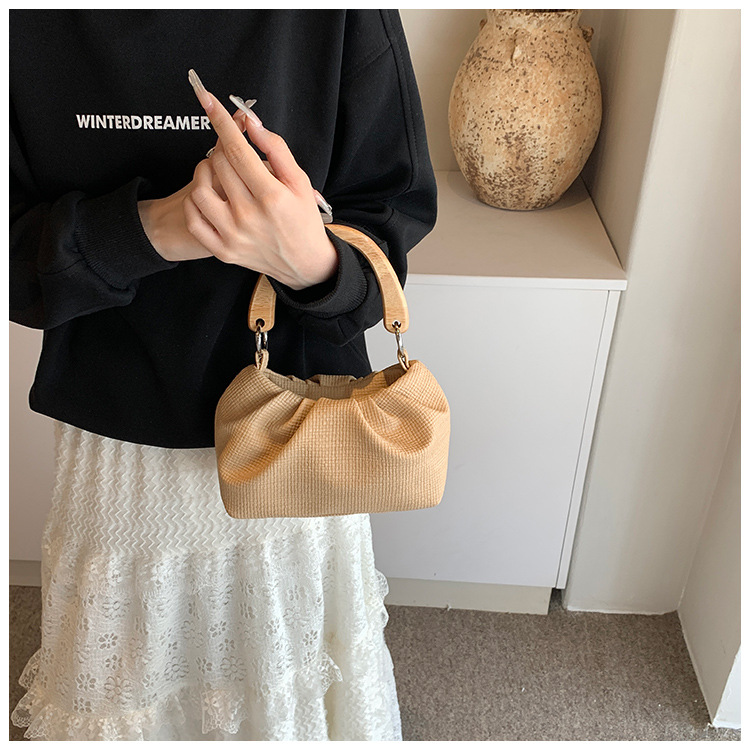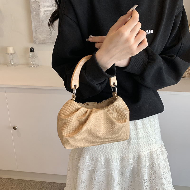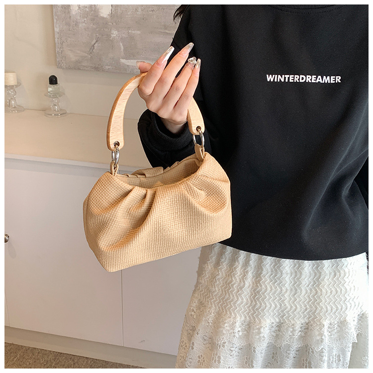 韩国小众设计包包女士新款时尚手提褶皱包百搭休闲单肩斜挎包