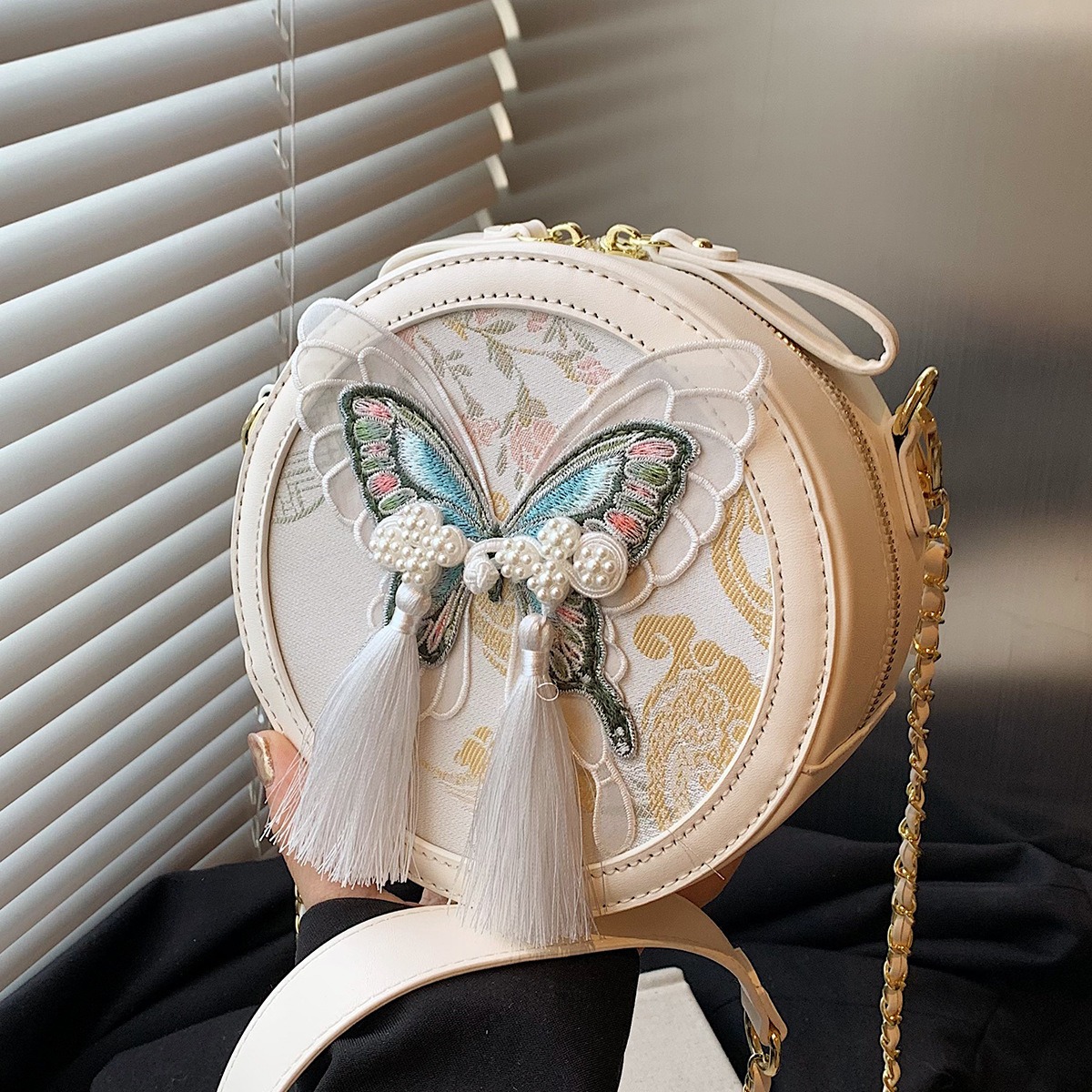 超火刺绣蝴蝶包包女新款潮时尚百搭链条斜挎包流行爆款小圆包