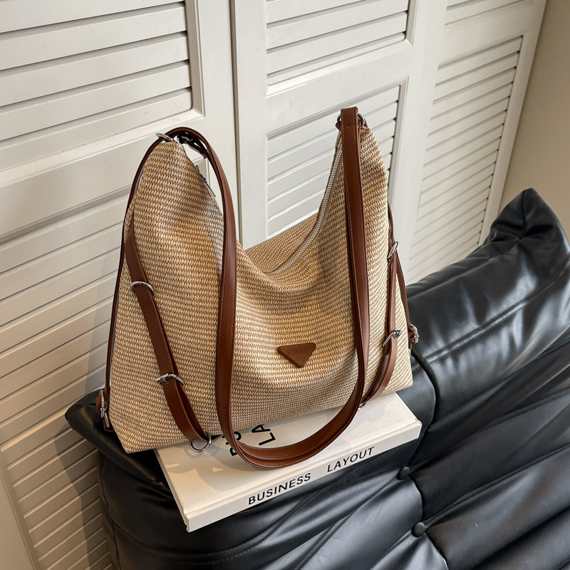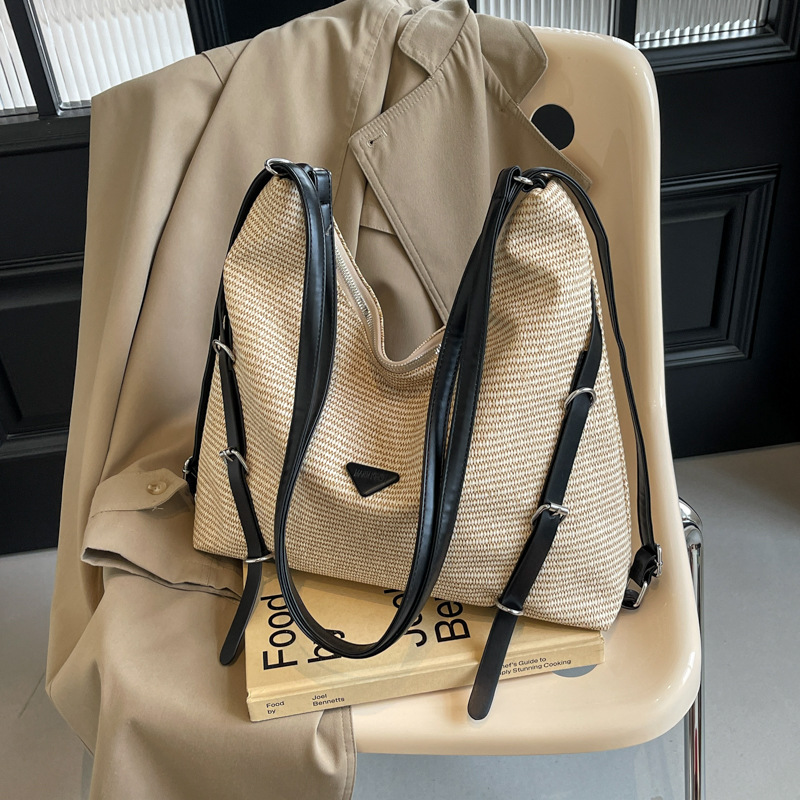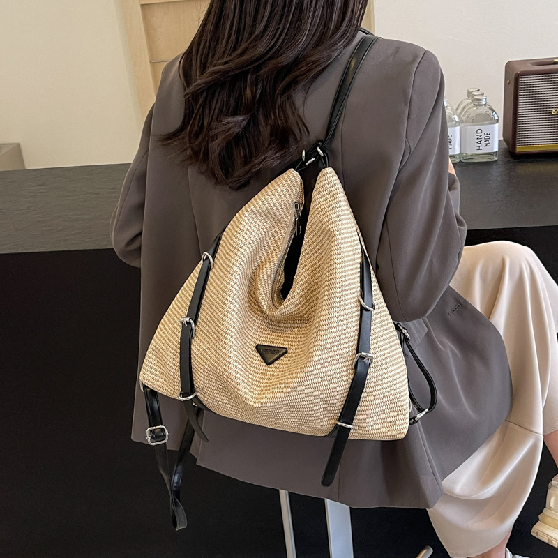 编织包包女式新款双肩包设计感沙滩度假单肩包大容量多用背包