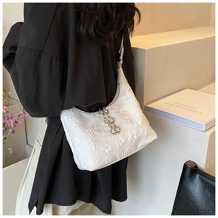 斜挎包直播热销小众设计PU休闲单肩包纯色质感休闲通勤字母饺子包