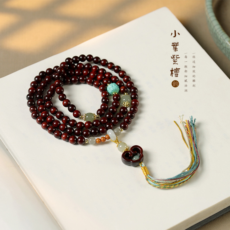 国风小叶紫檀108颗佛珠手持6mm多圈文玩念珠盘玩手串