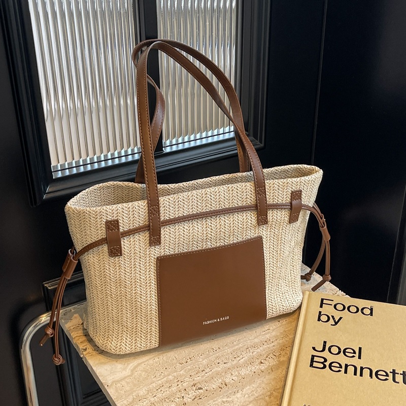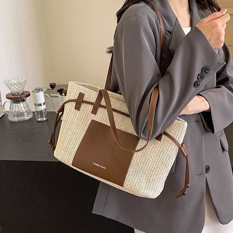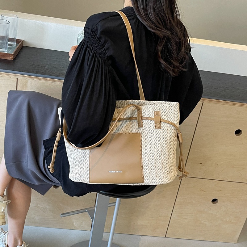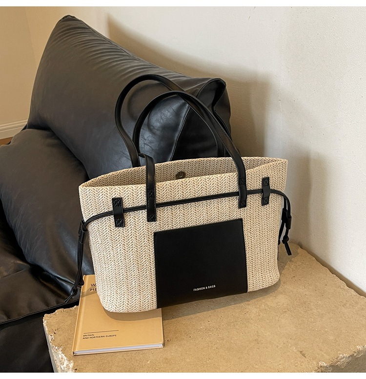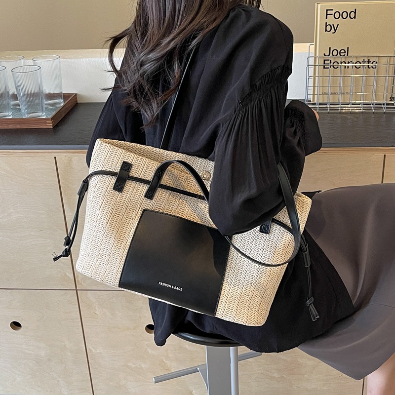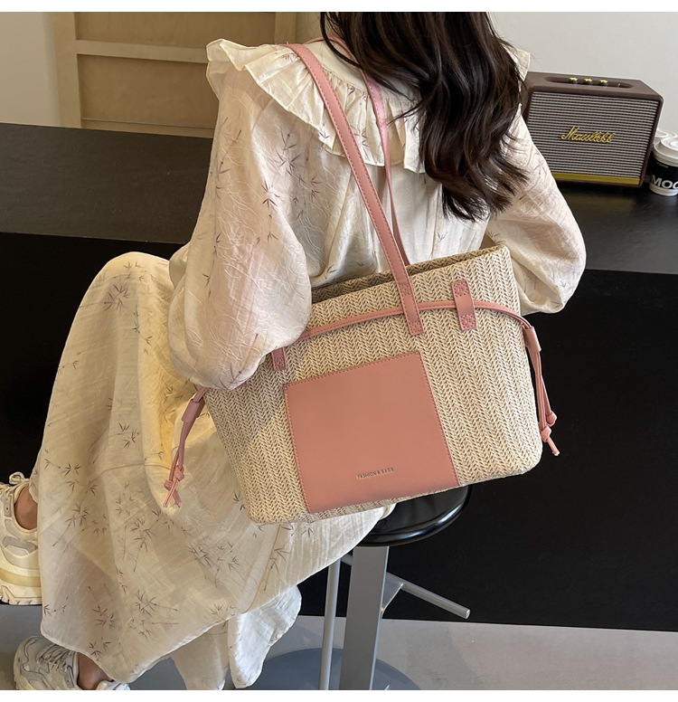 时尚通勤大容量草编包包女新款海边度假沙滩包单肩手提托特包
