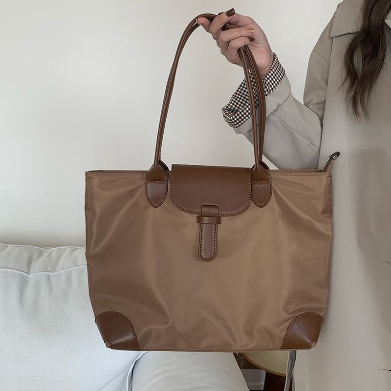 托特包包女日韩新款大容量手提包撞色尼龙帆布休闲通勤单肩包