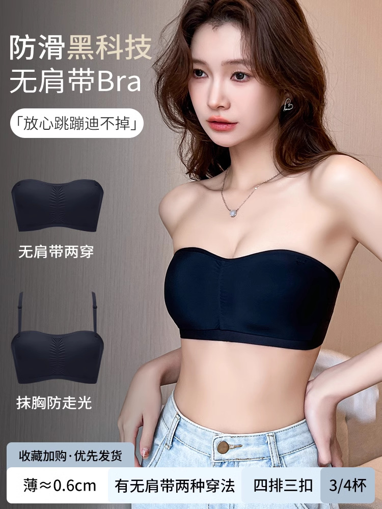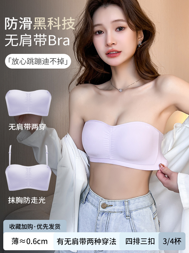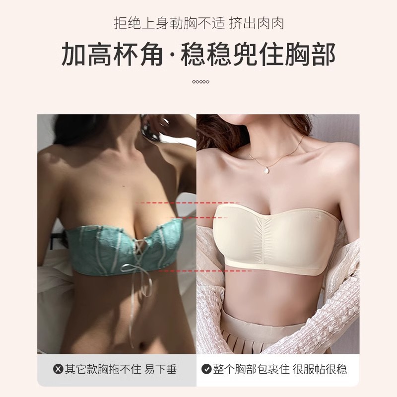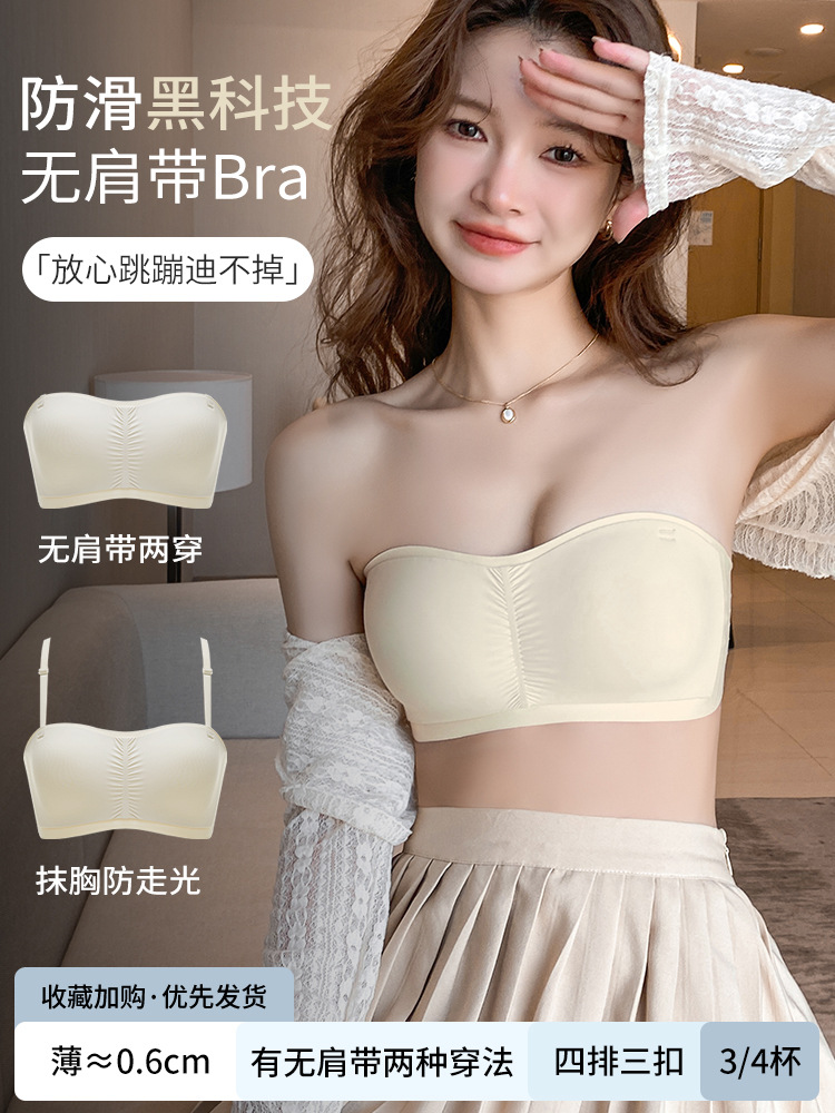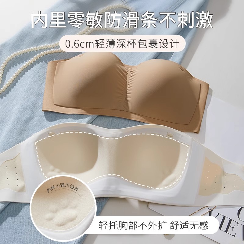 夏季薄款无肩带内衣女防滑不掉小胸聚拢不空杯透气无痕文胸抹胸式