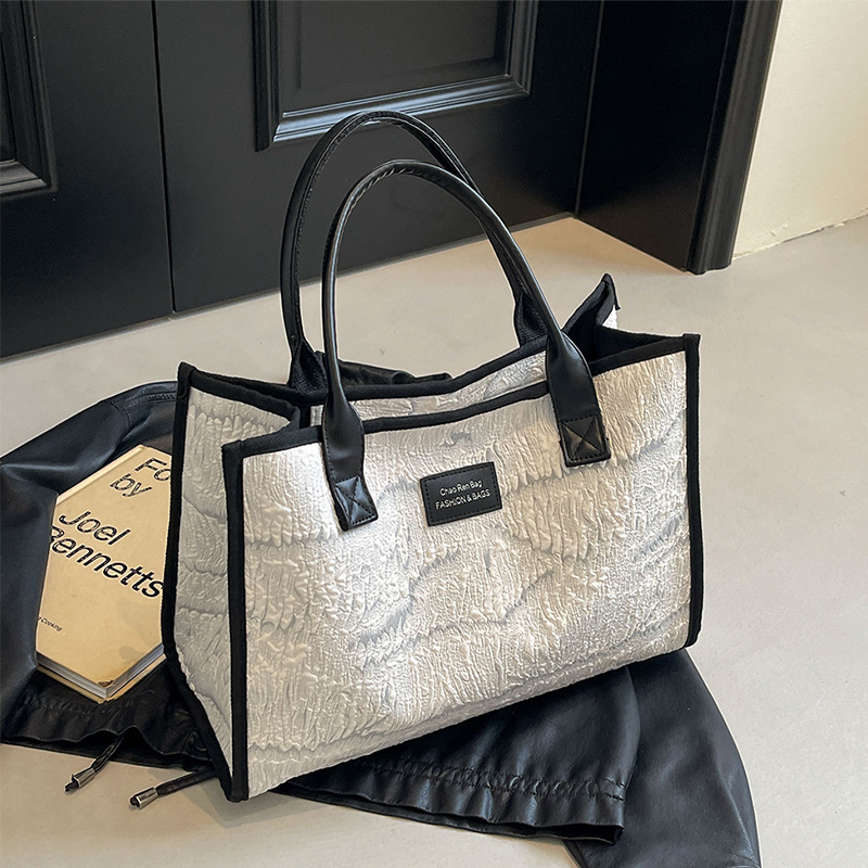 大容量托特包包女春夏新款通勤手提包时尚高级感撞色单肩布包