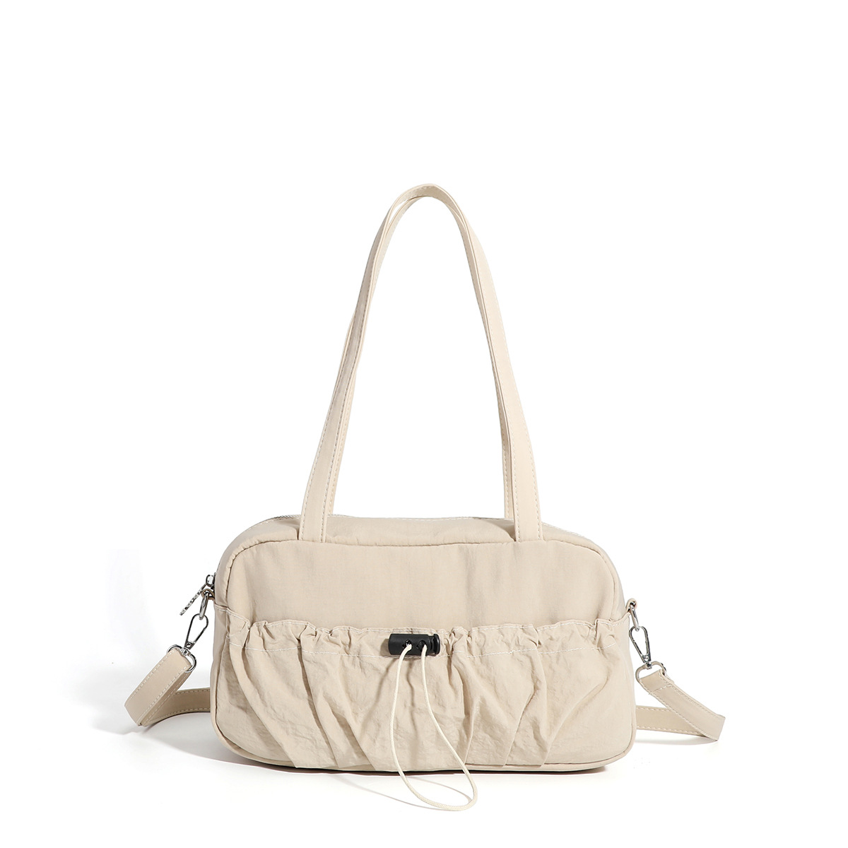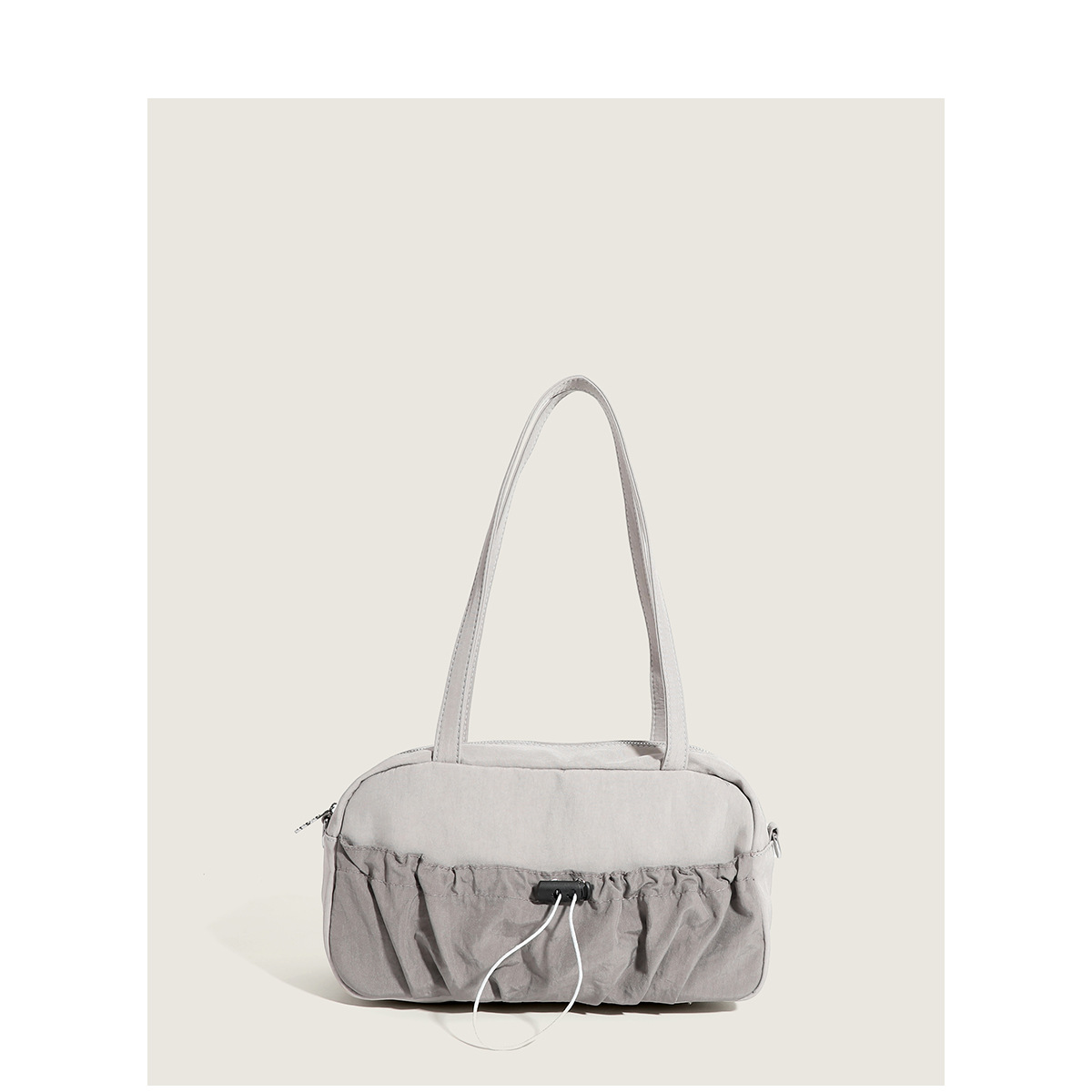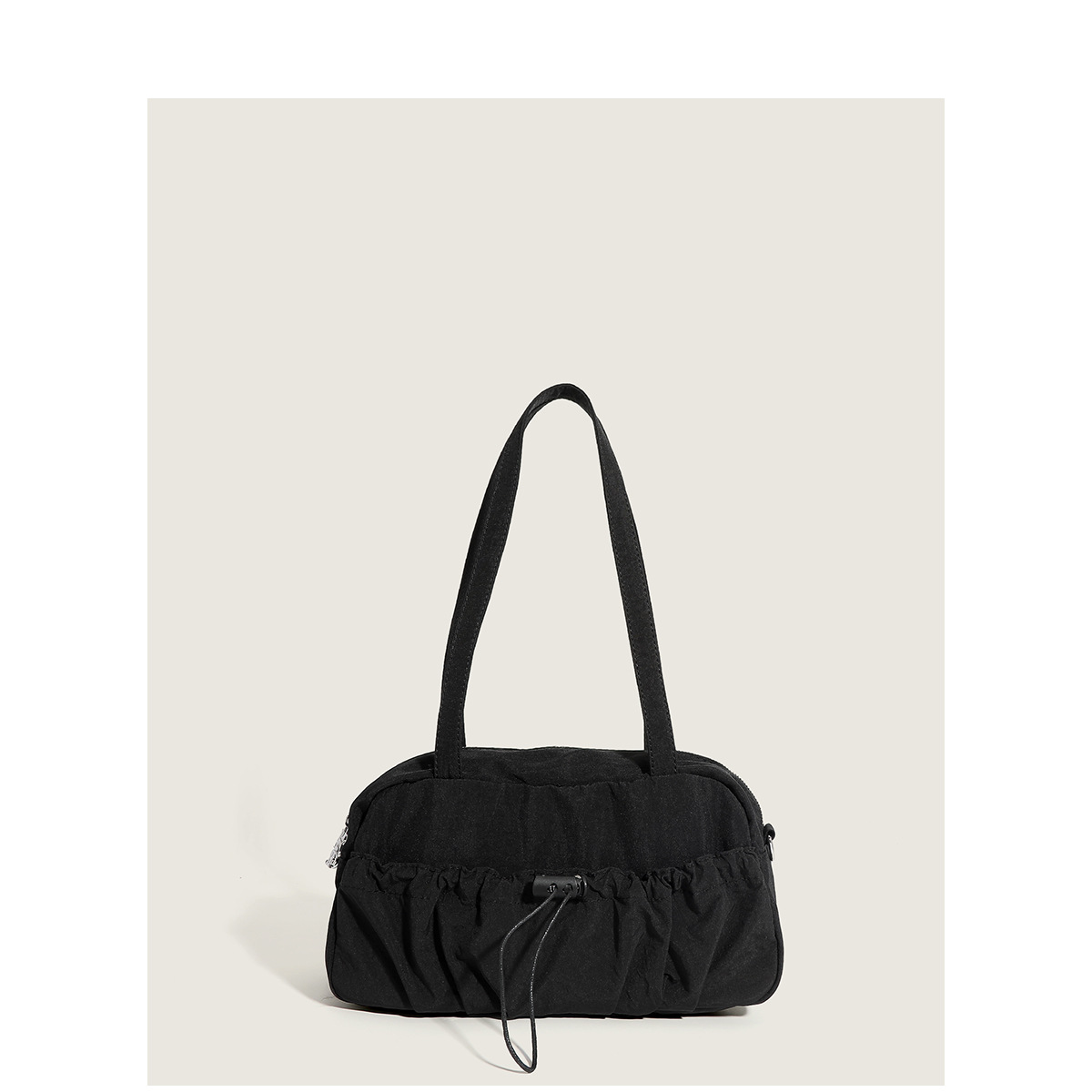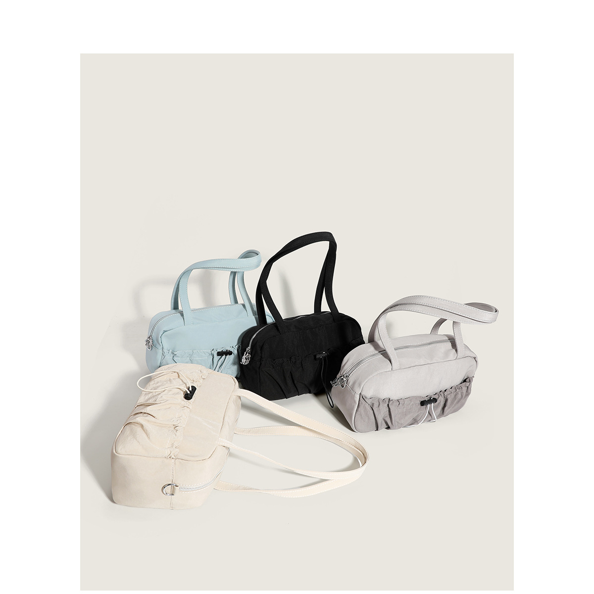 休闲小众帆布托特包新款褶皱抽绳手提方形枕头包腋下包