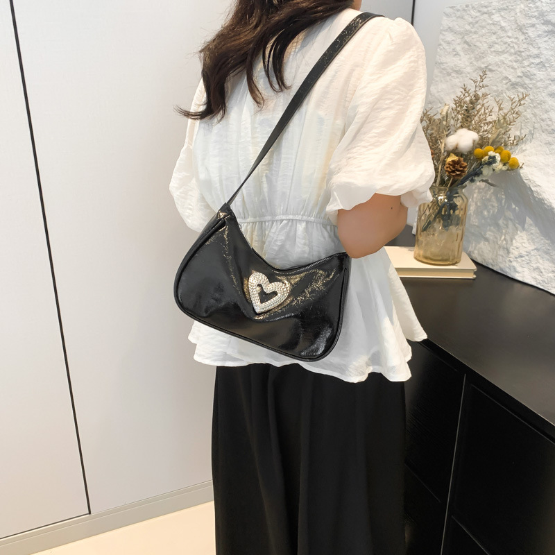 银色小众腋下包包女新款潮时尚爱心手提月牙包百搭ins单肩包