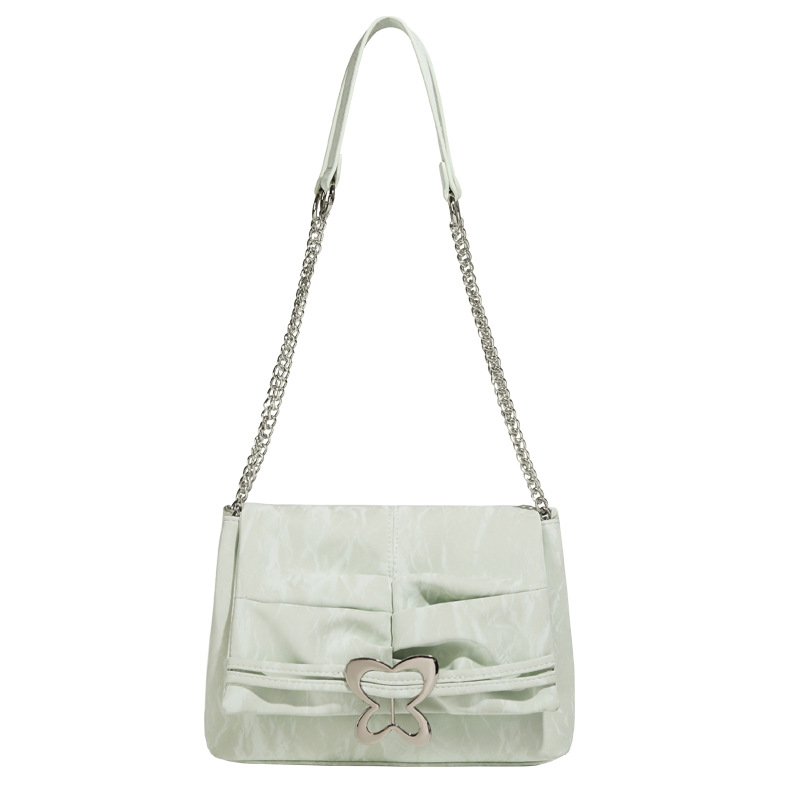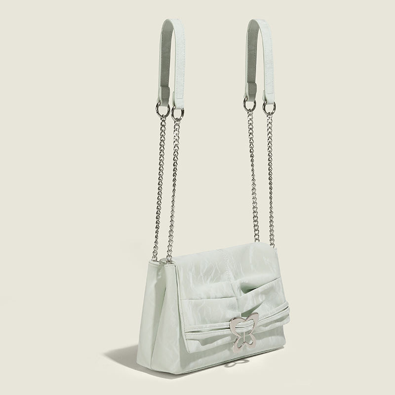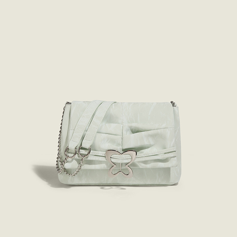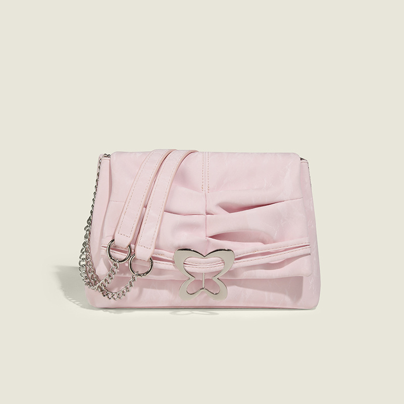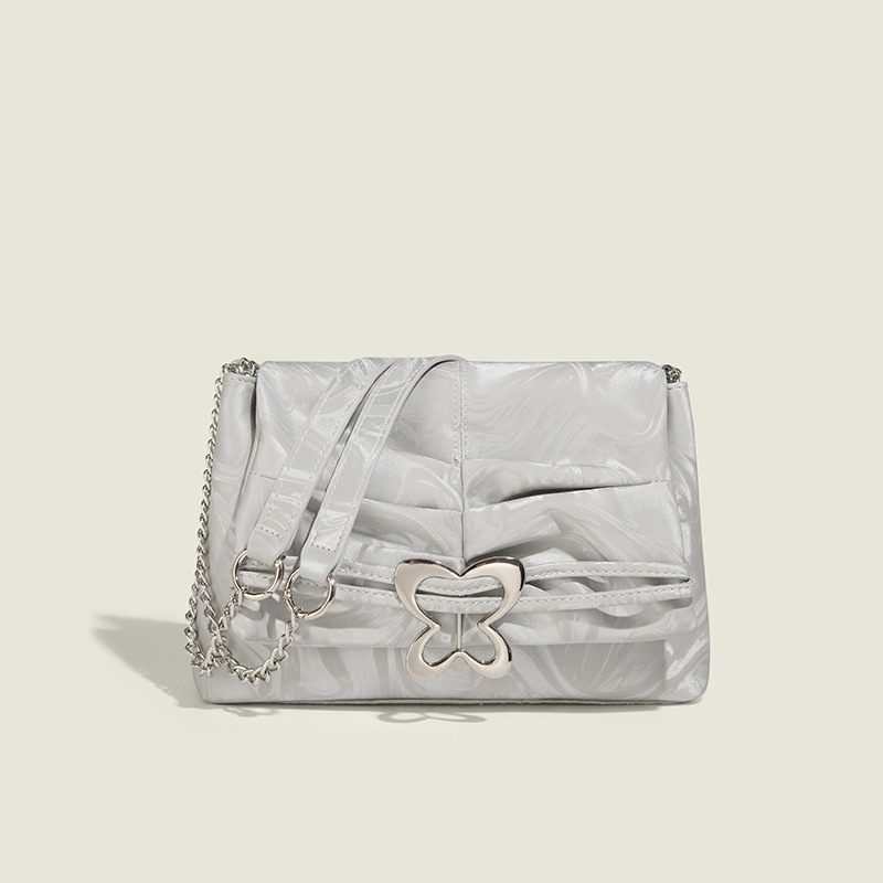 新款夏天小众链条单肩斜跨包双肩包蝴蝶褶皱腋下单肩女包