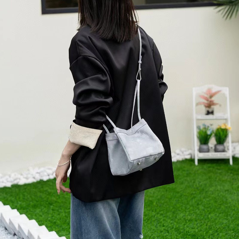 新中式国风晕染菜篮子包牛皮绸缎锦囊包手提包女单肩斜挎包水桶包