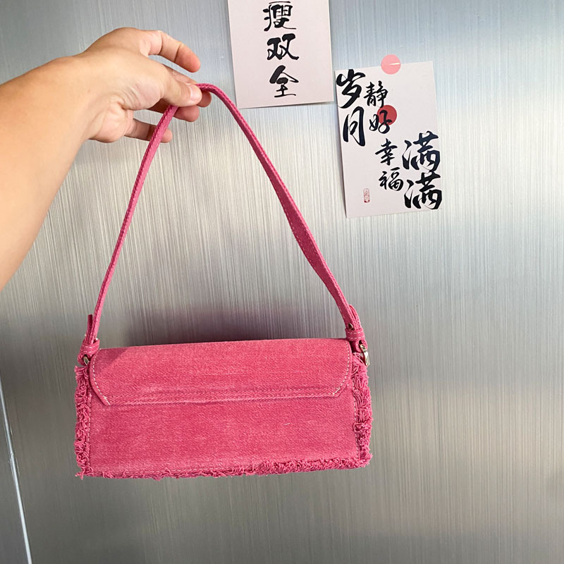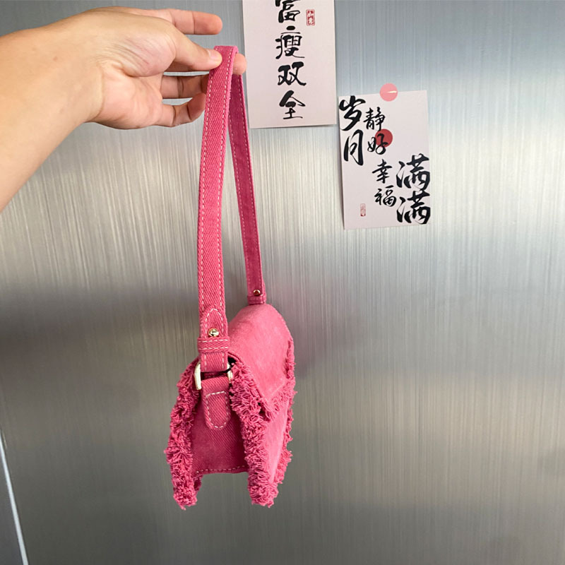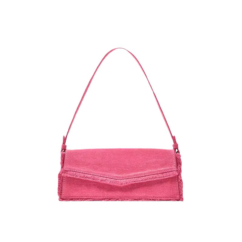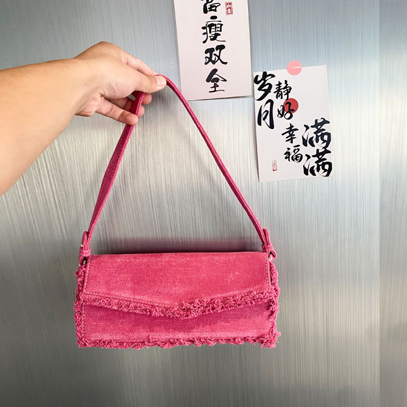 单肩包包女秋季新款潮百搭辣妹桃红色面料斜手提肩背包腋下包