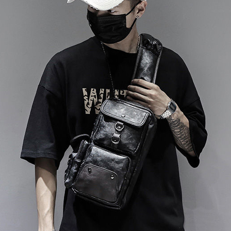 胸包男真皮牛皮胸前包休闲男士单肩斜挎包韩版潮流学生腰包小背包