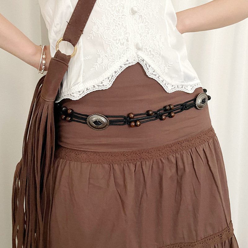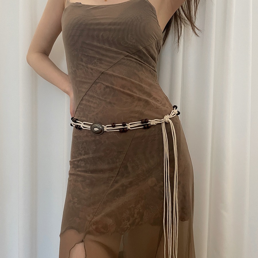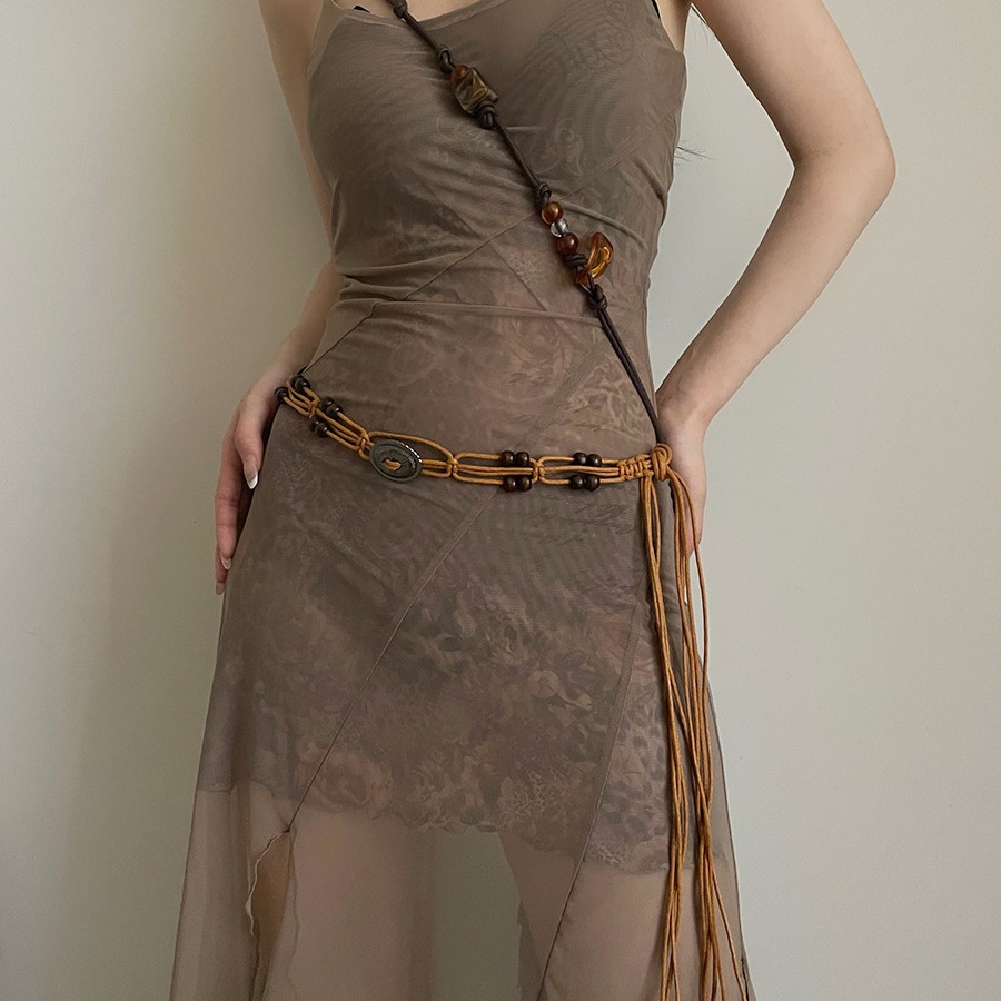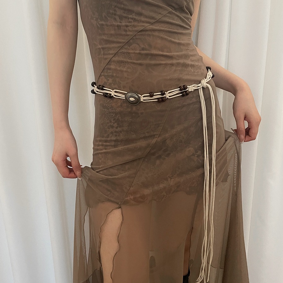 波西米亚民族风腰绳女时尚串珠设计感配裙子腰链复古百搭编织腰带