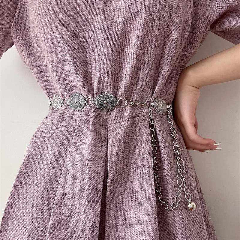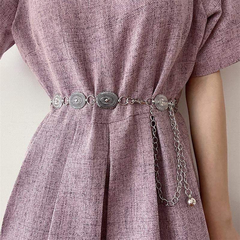 欧美银色金属腰带女百搭夏季配裙子西装连衣裙链条腰链女士ins潮