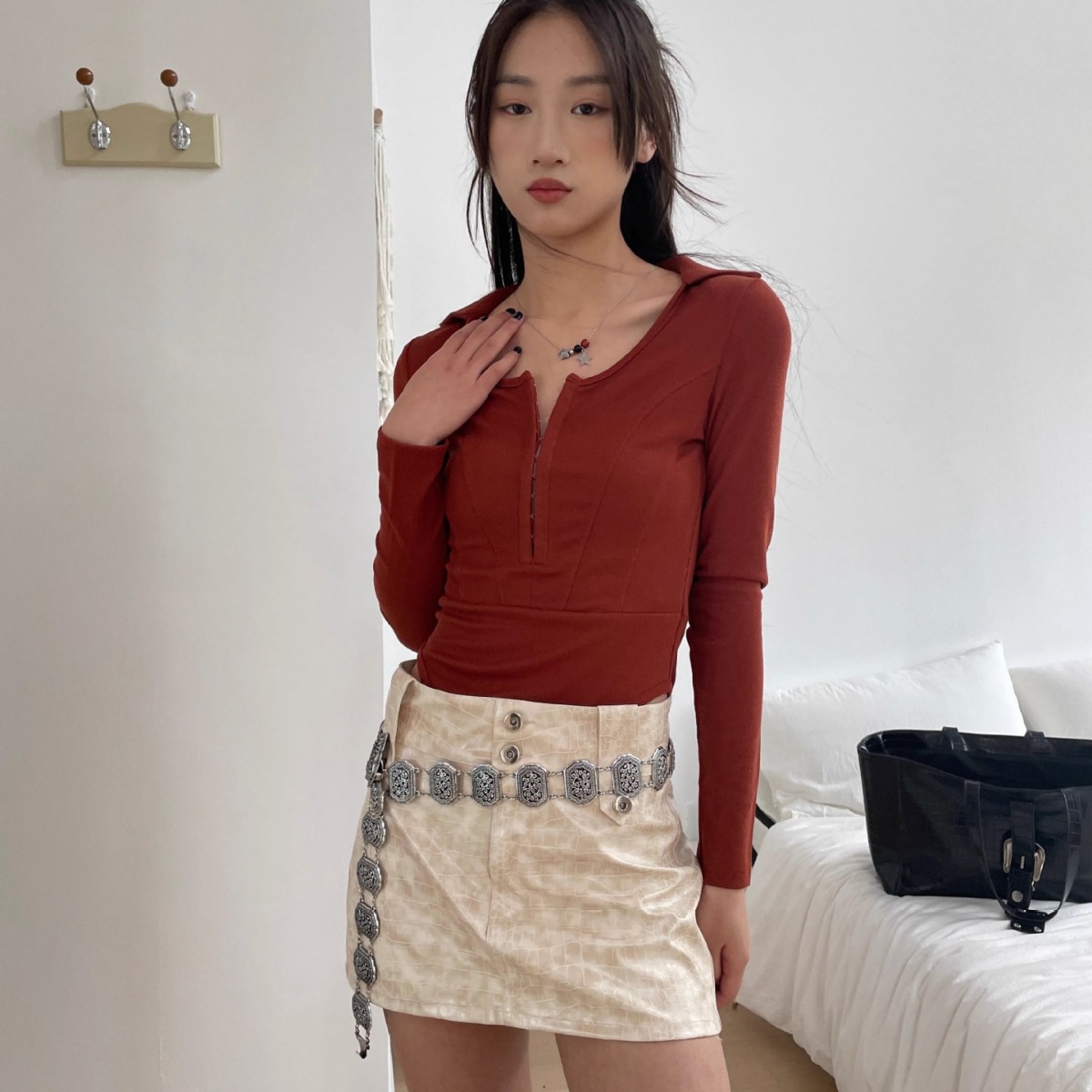 夏季新款纯欲风设计感镂空修身短款打底衫短袖T恤女装上衣
