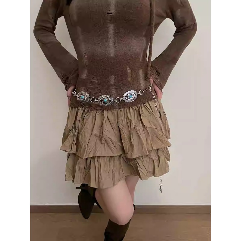 波西米亚复古腰链女椭圆形绿松石镶嵌民族风设计感腰带女显瘦细腰