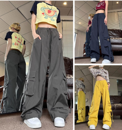 美式vibe风设计感复古休闲速干伞兵工装裤裤子女宽松直筒降落伞裤