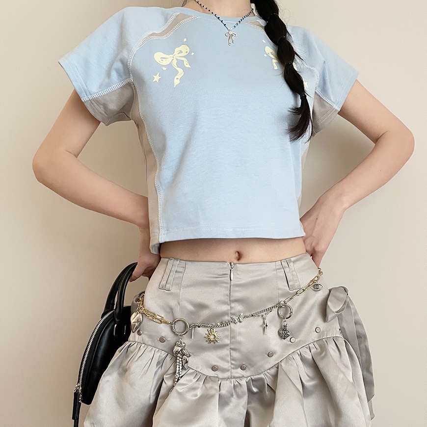 设计感短袖T恤女韩版圆领撞色小众夏季新款修身显瘦百搭
