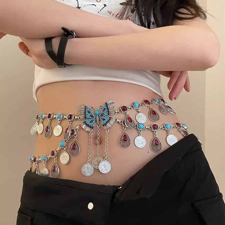 蝴蝶民族风压花腰链女配裙子高级感个性韩版百搭新款收腰显瘦配饰
