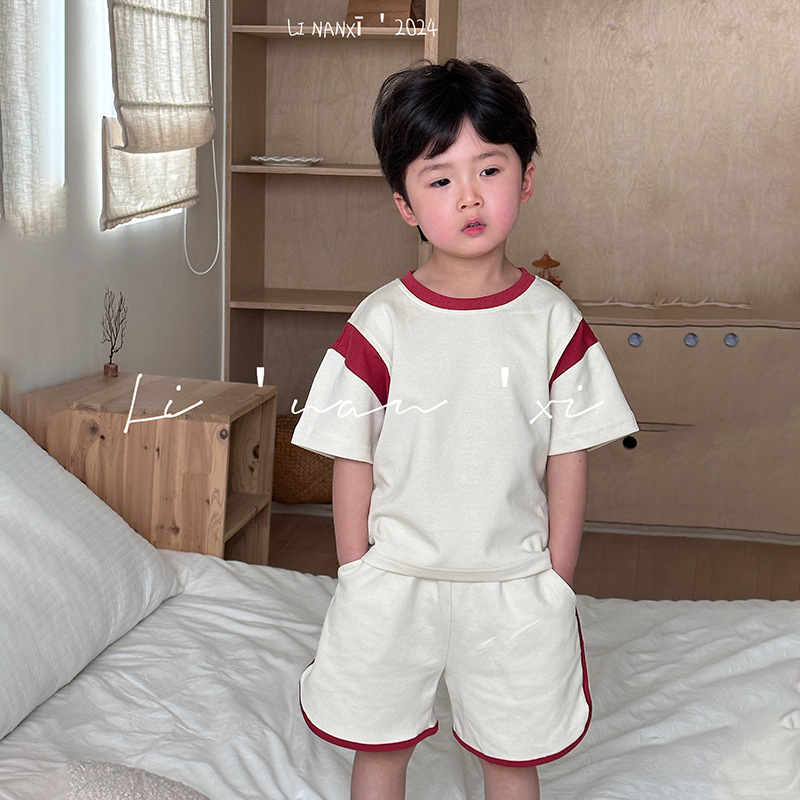 80077男女童套装24夏新款宝宝条纹拼色百搭时尚出街必备短袖+短裤
