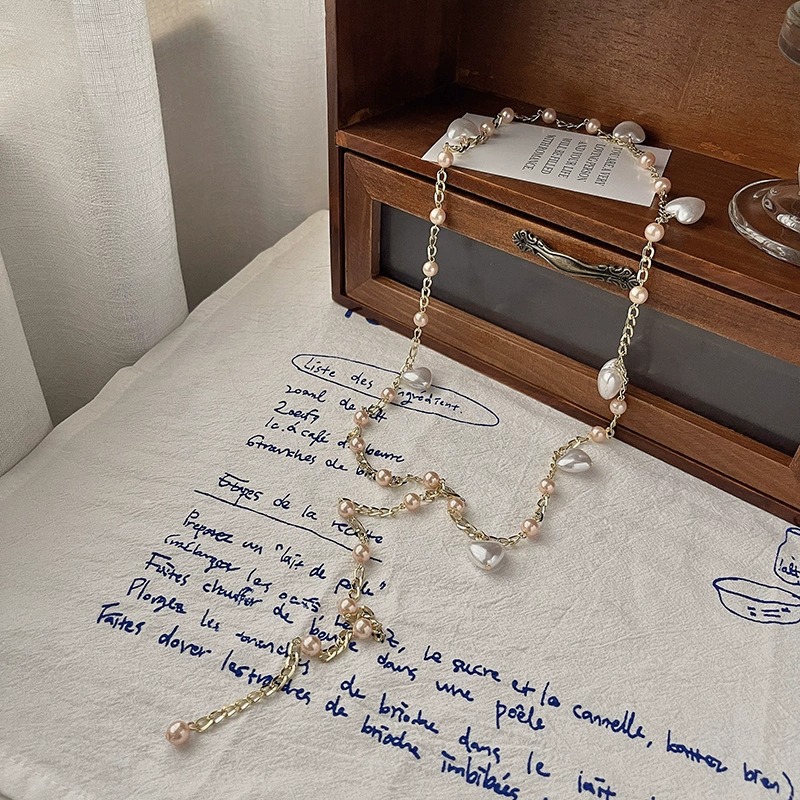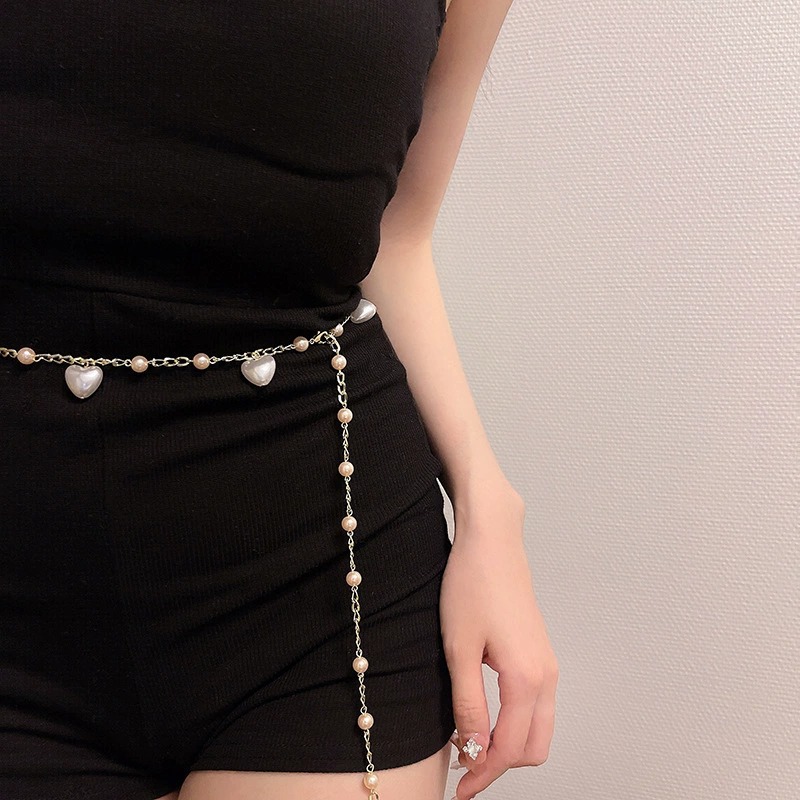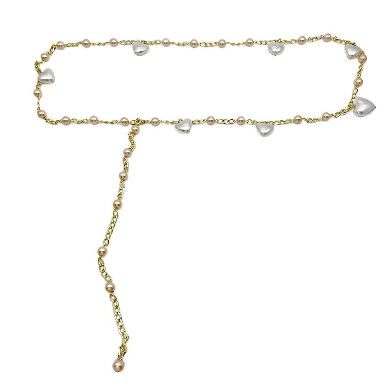腰链女新款设计感爱心珍珠腰带装饰配裙子金色金属链条皮带女