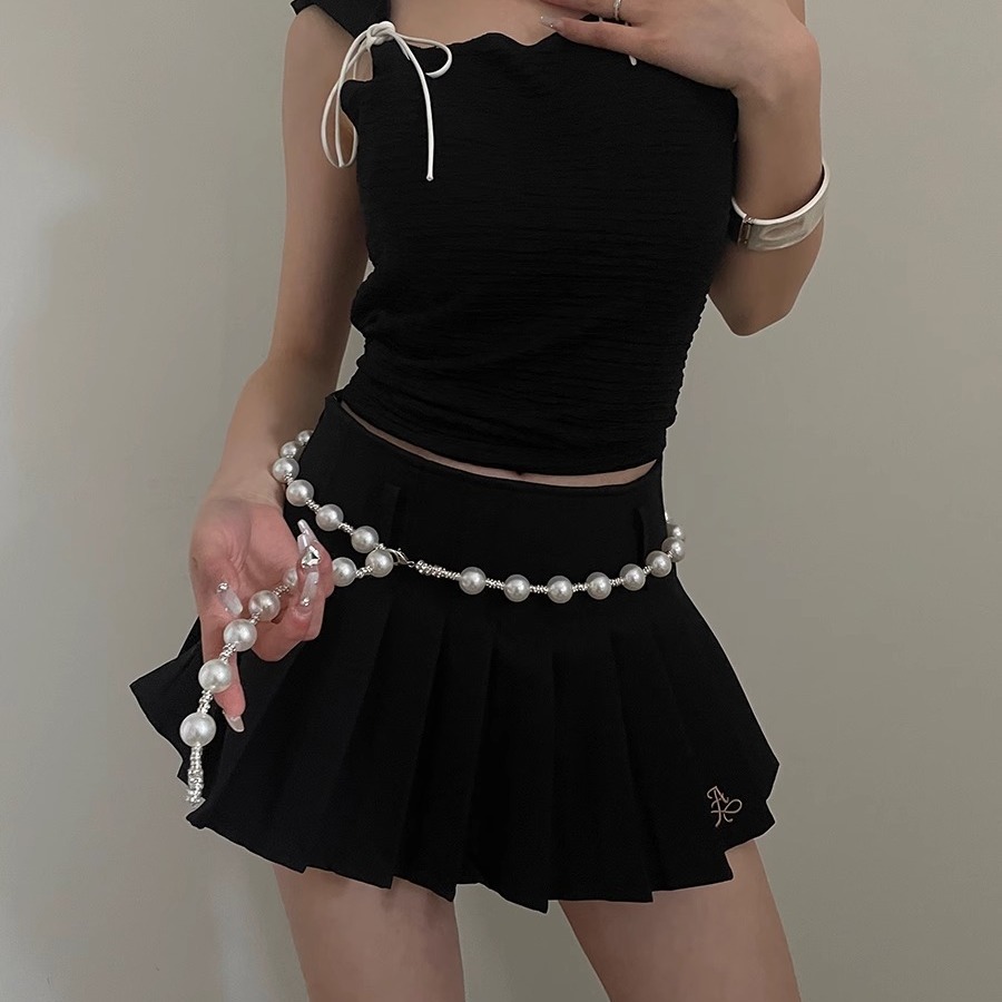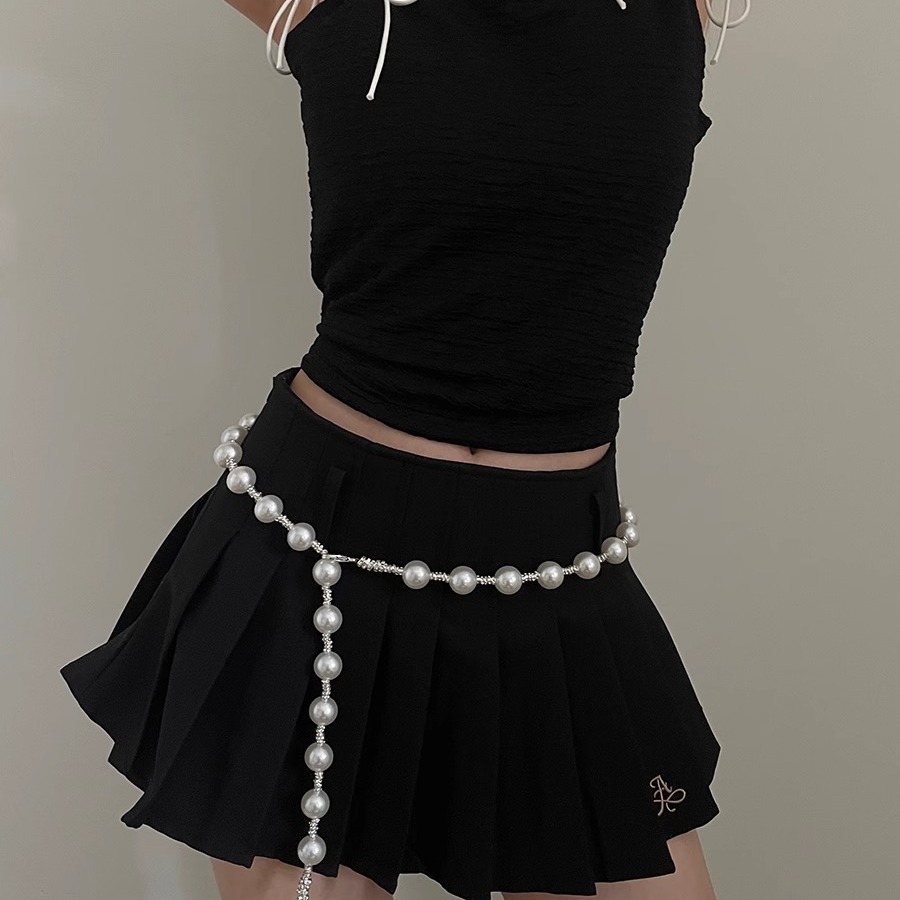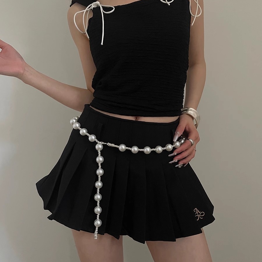 新款白色珍珠腰带女装饰配连衣裙子衬衫韩版百搭腰链收腰配饰