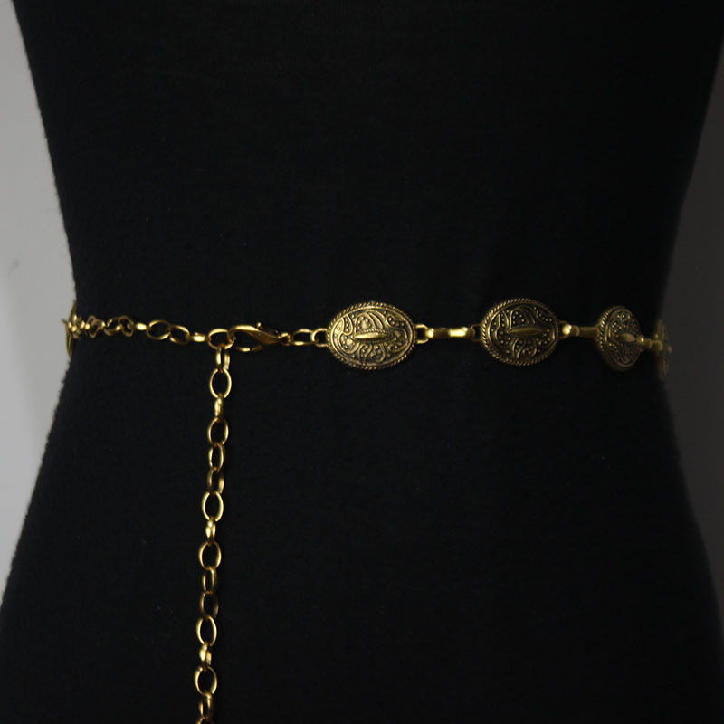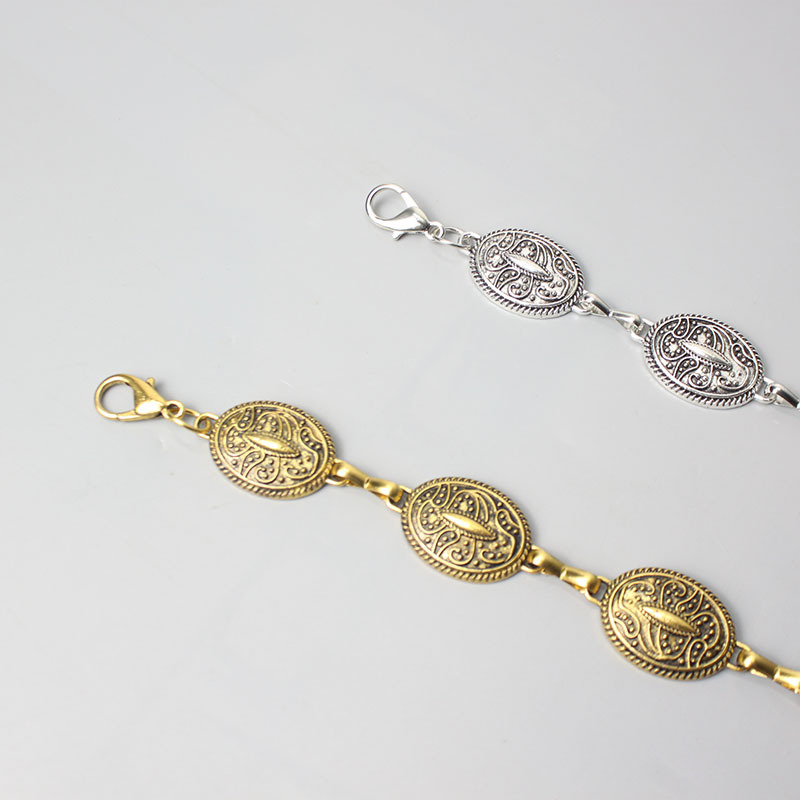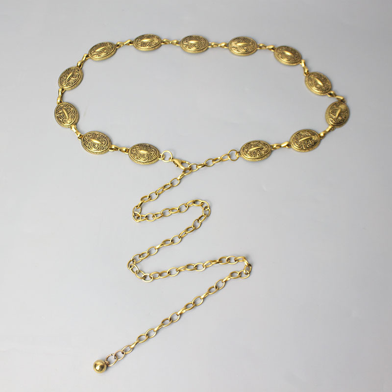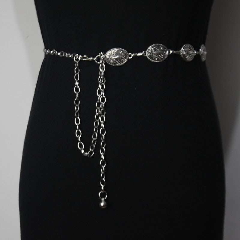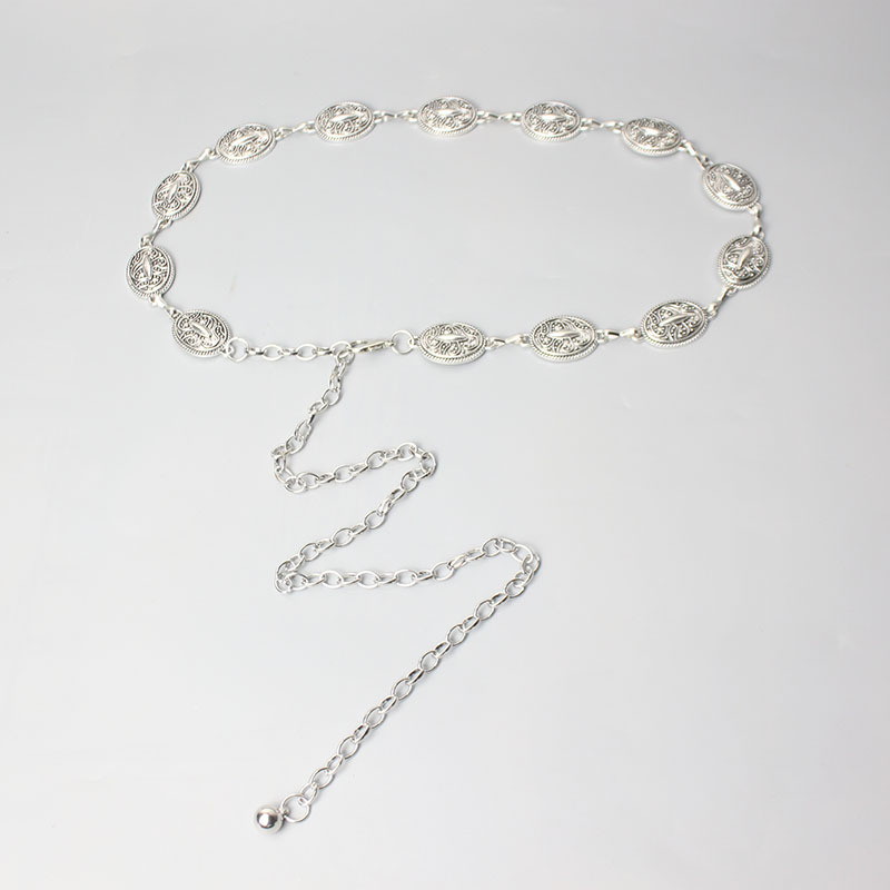 民族风椭圆雕花金属腰链女新款装饰连衣裙复古铜腰链条朋克腰带银
