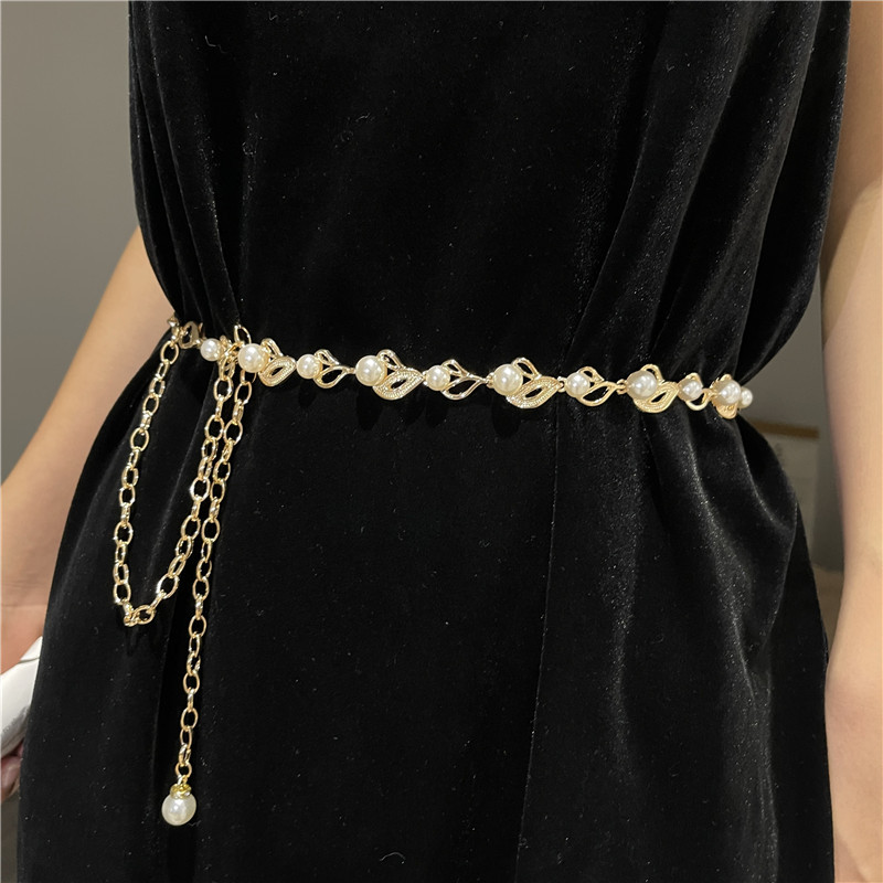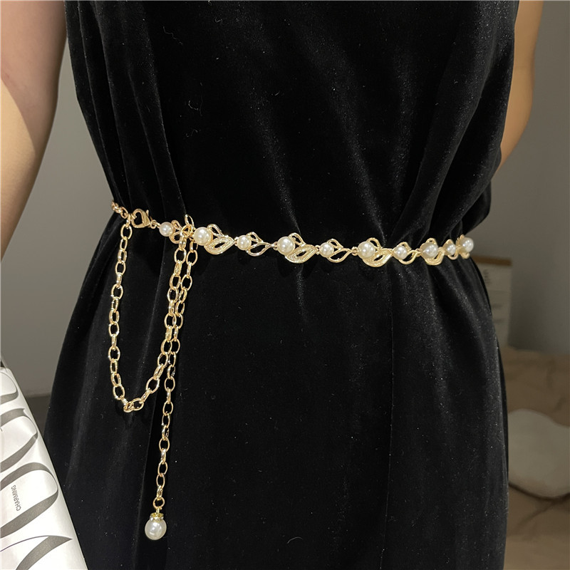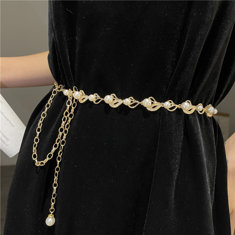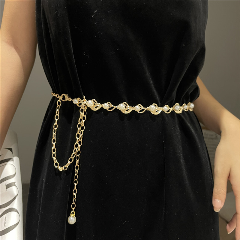 金色珍珠腰链女配韩版西装百搭装饰细腰带金属链条毛衣裙子配饰潮