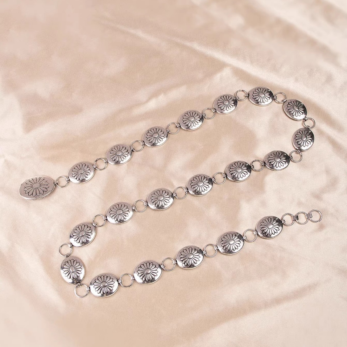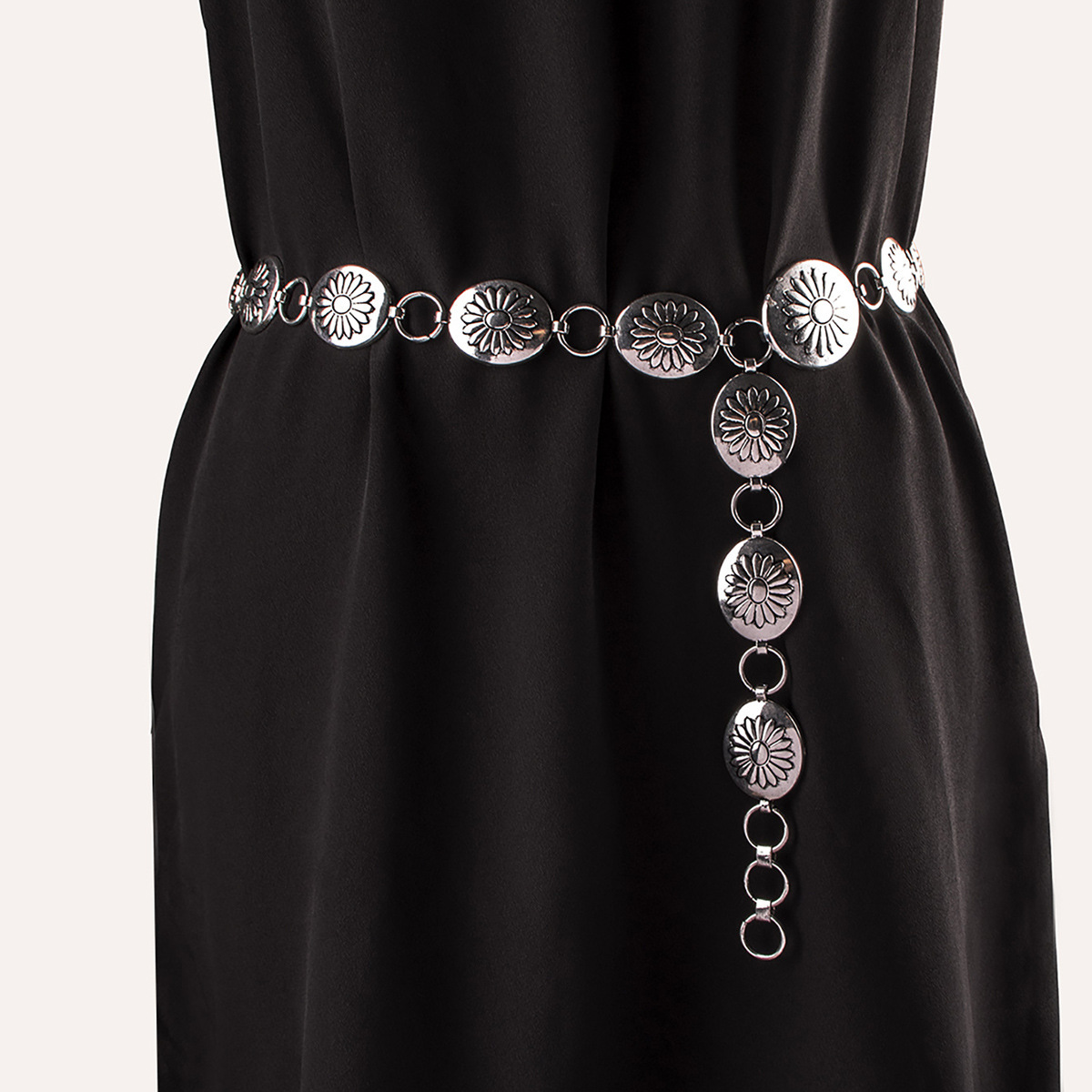 欧美 外贸订单白抹黑西部ins风金属腰链雕花跨境优雅女士现货腰封
