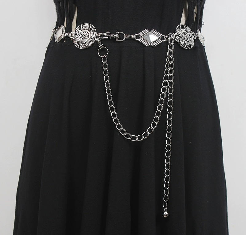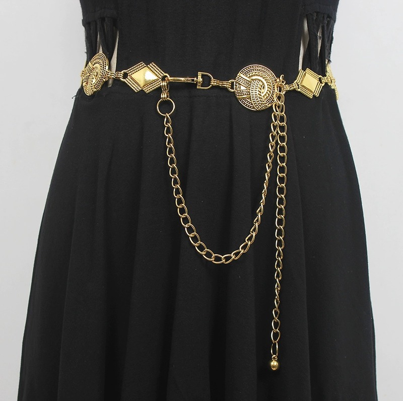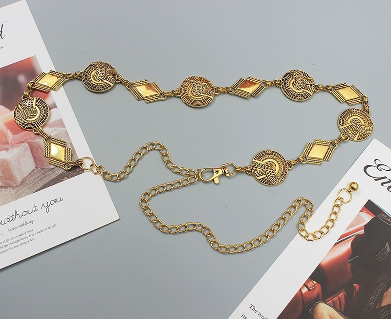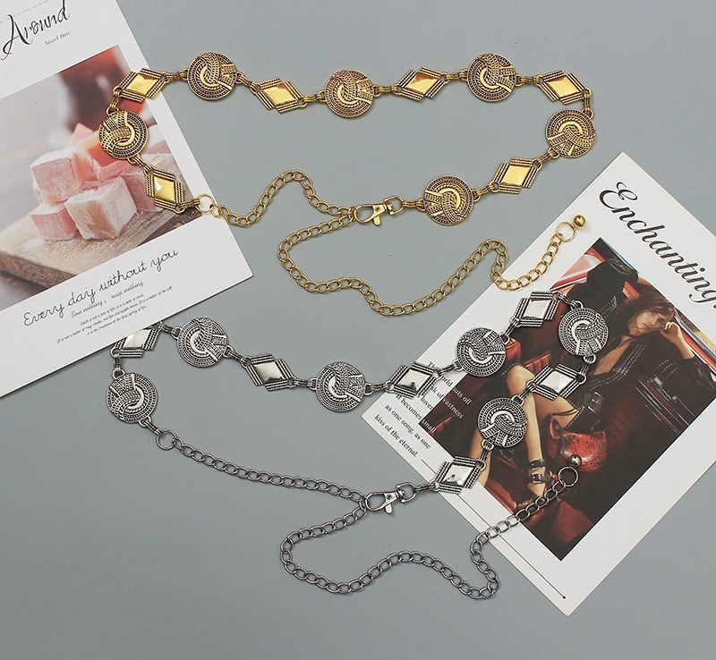 复古民族风轧花纹甜美百搭金属合金腰带腰链