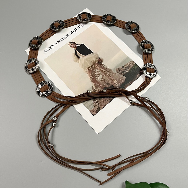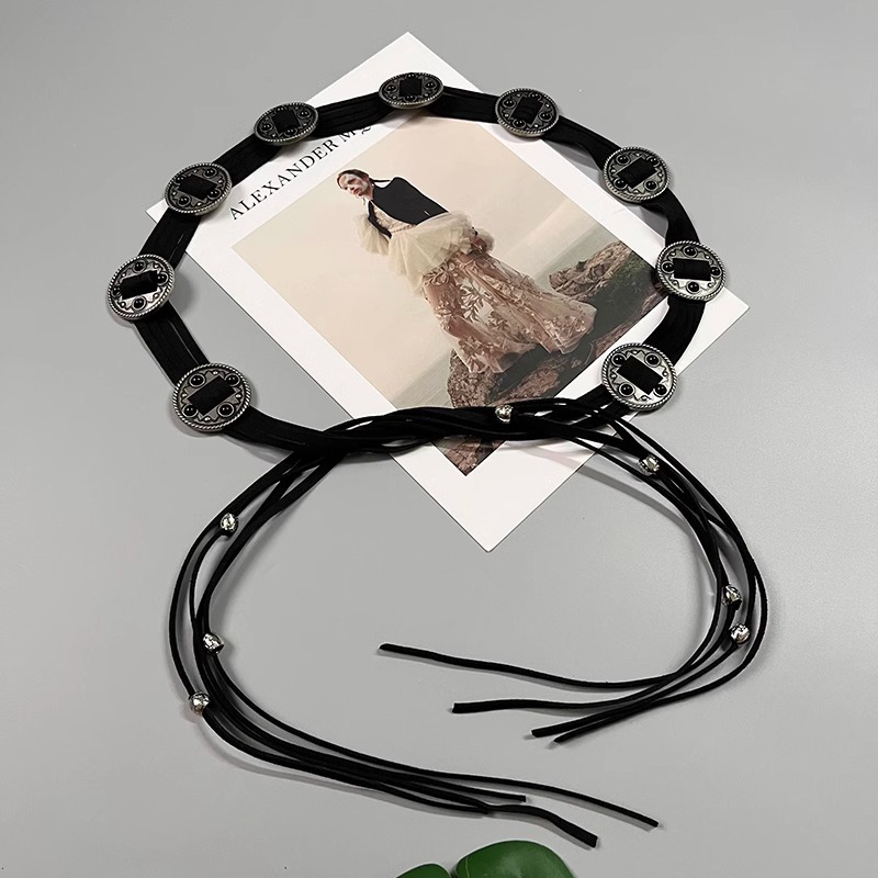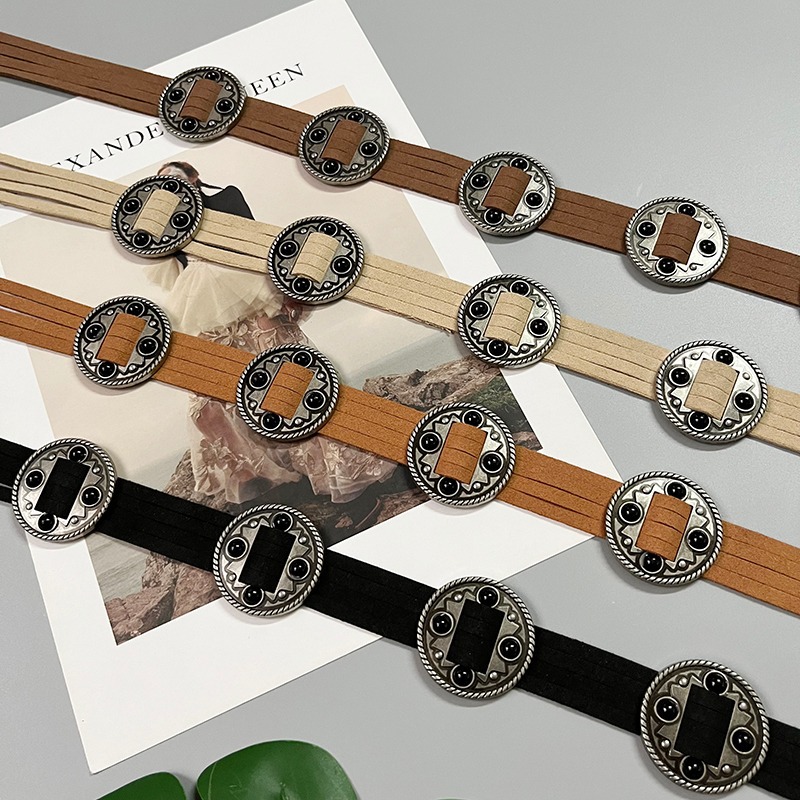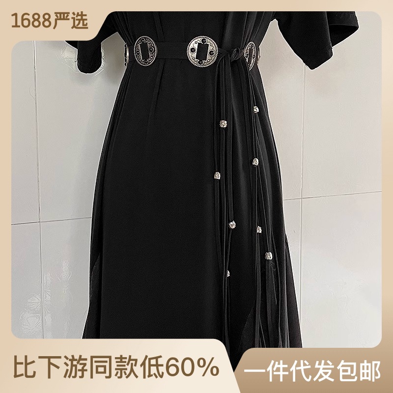 复古少数民族风黑石镶嵌腰链印第安部落风流苏腰带皮带波西米亚风