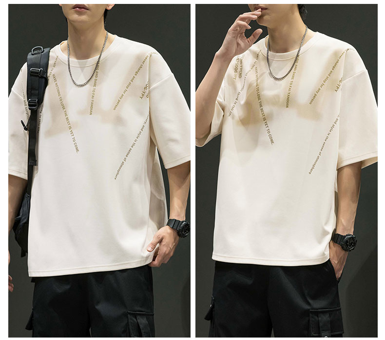 夏季大码男士短袖T恤白色百搭宽松半袖加肥加大胖子印花圆领上衣