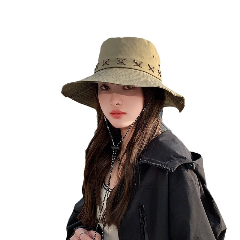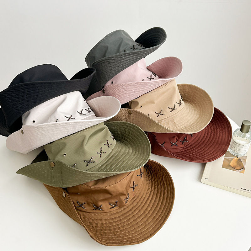 男女春夏时尚交叉百搭渔夫帽韩版户外登山帽子旅行沙滩遮阳太阳帽
