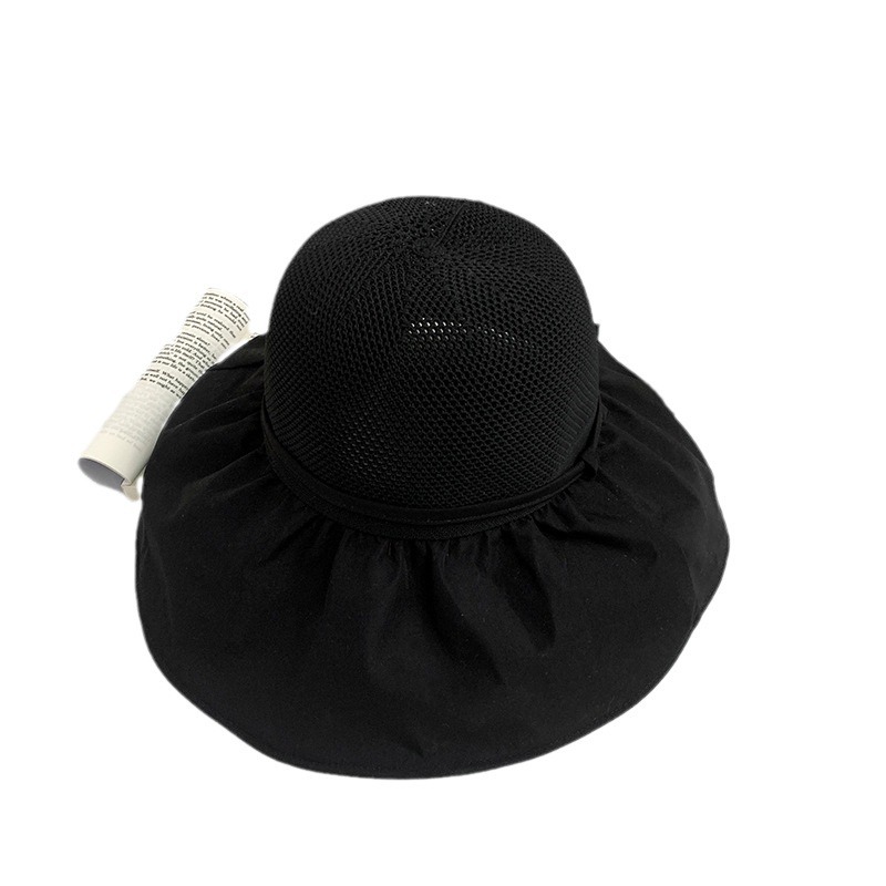 春夏时尚细带蝴蝶结黑胶渔夫帽女户外旅行沙滩遮阳帽可折叠休闲帽