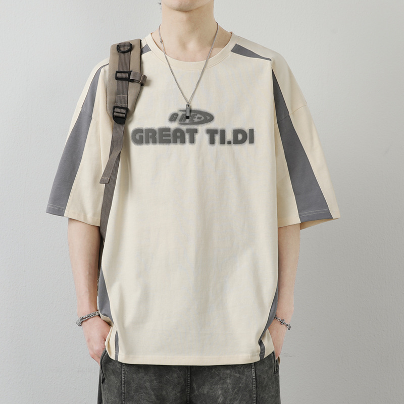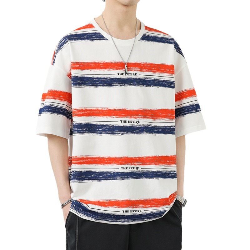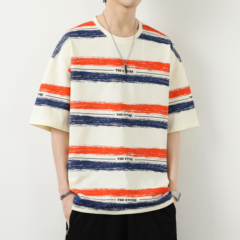 条纹短袖T恤男夏季潮流百搭休闲宽松日系复古情侣潮牌半袖体恤ins