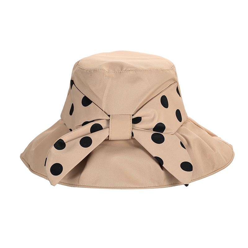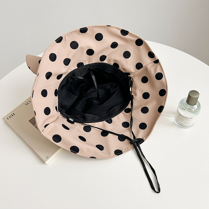春夏圆点百搭蝴蝶结渔夫帽女沙滩户外旅行遮阳太阳帽可折叠帽子潮