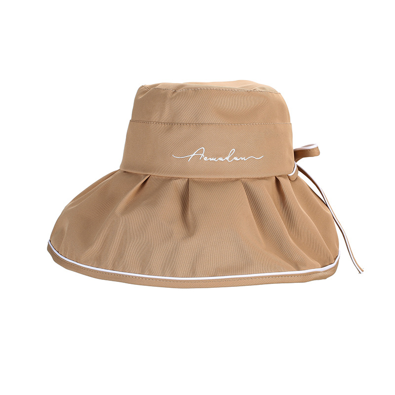 新款时尚字母黑胶遮阳渔夫帽蝴蝶结优雅防晒遮阳帽沙滩旅行太阳帽