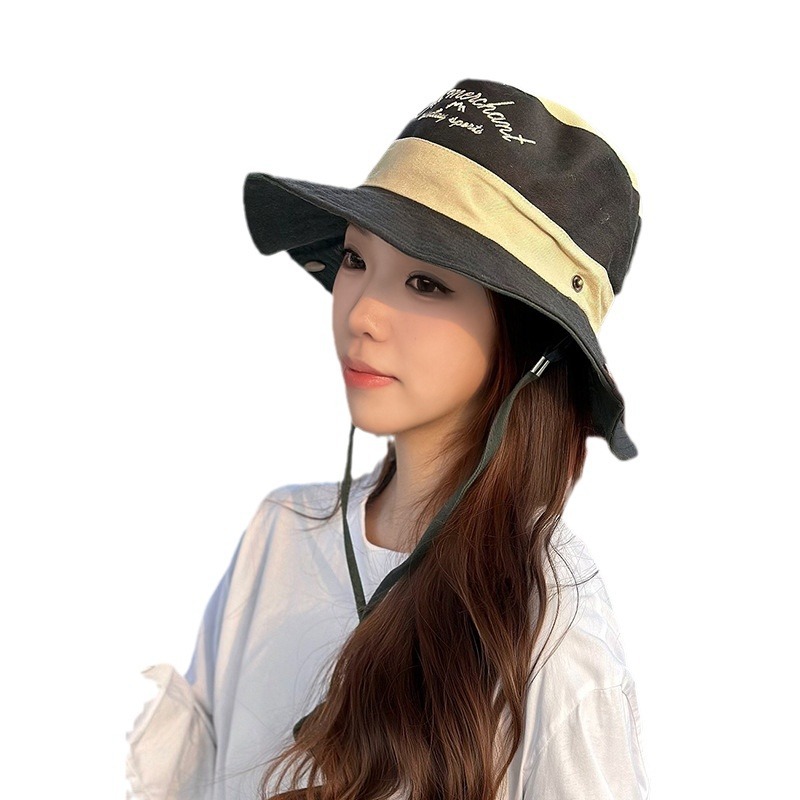 春夏时尚拼色刺绣字母渔夫帽女户外旅行沙滩遮阳帽子休闲登山帽潮