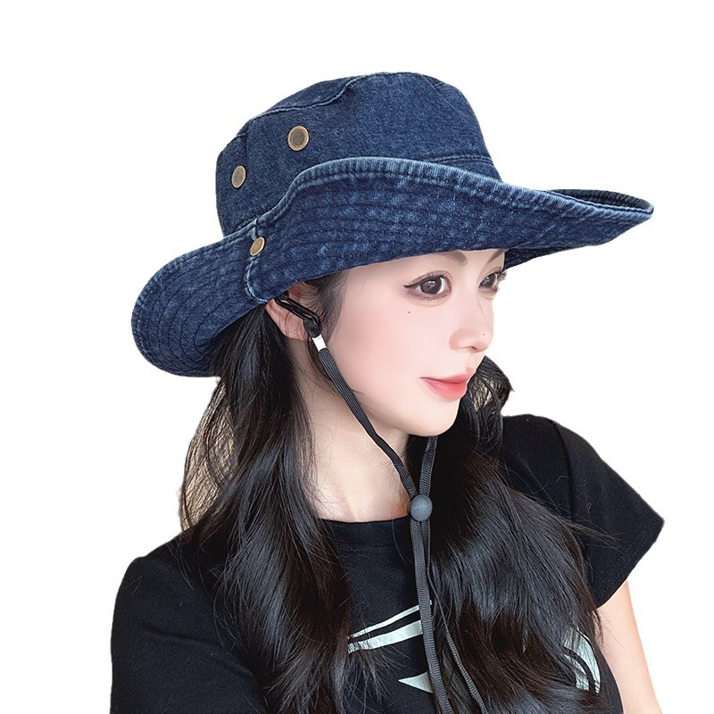 春夏新款时尚牛仔渔夫帽优雅休闲百搭遮阳帽登山骑行防晒太阳帽子