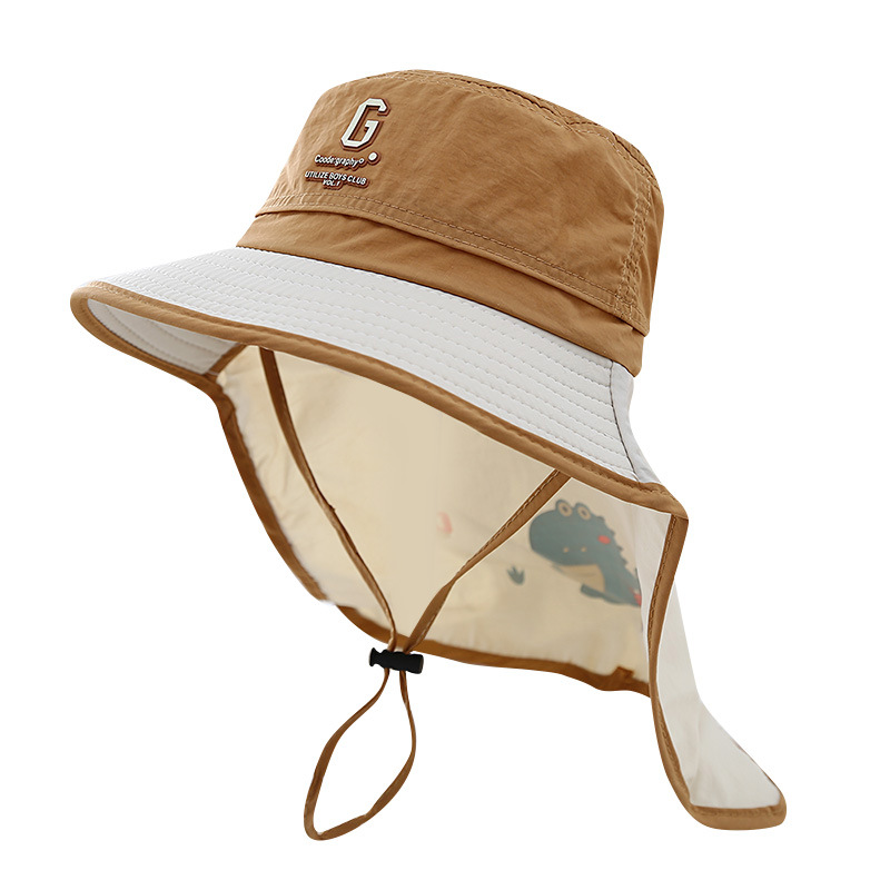 儿童春夏刺绣字母百搭渔夫帽护颈户外旅行遮阳太阳帽小童休闲帽子