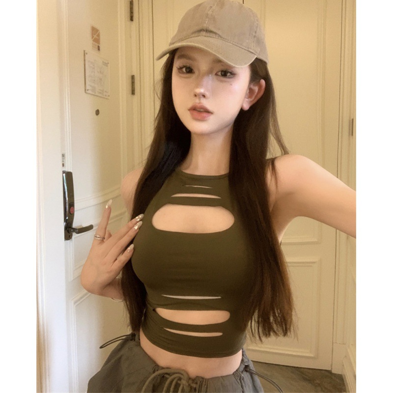美式复古吊带背心女装夏季欧美辣妹镂空内搭工字短款上衣外穿